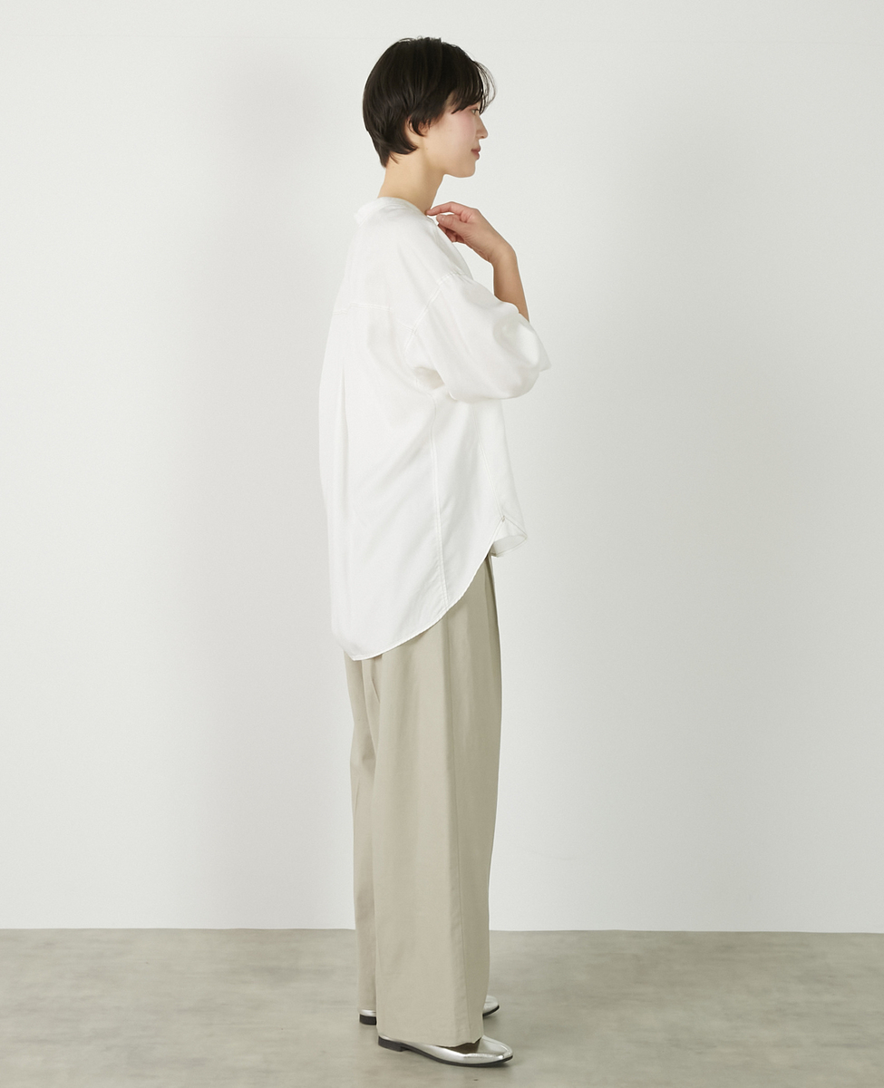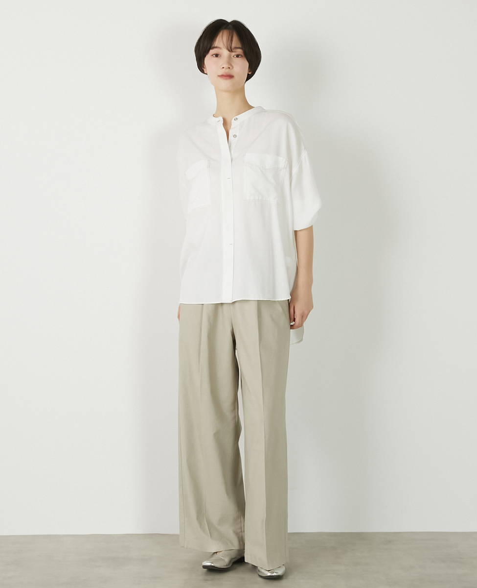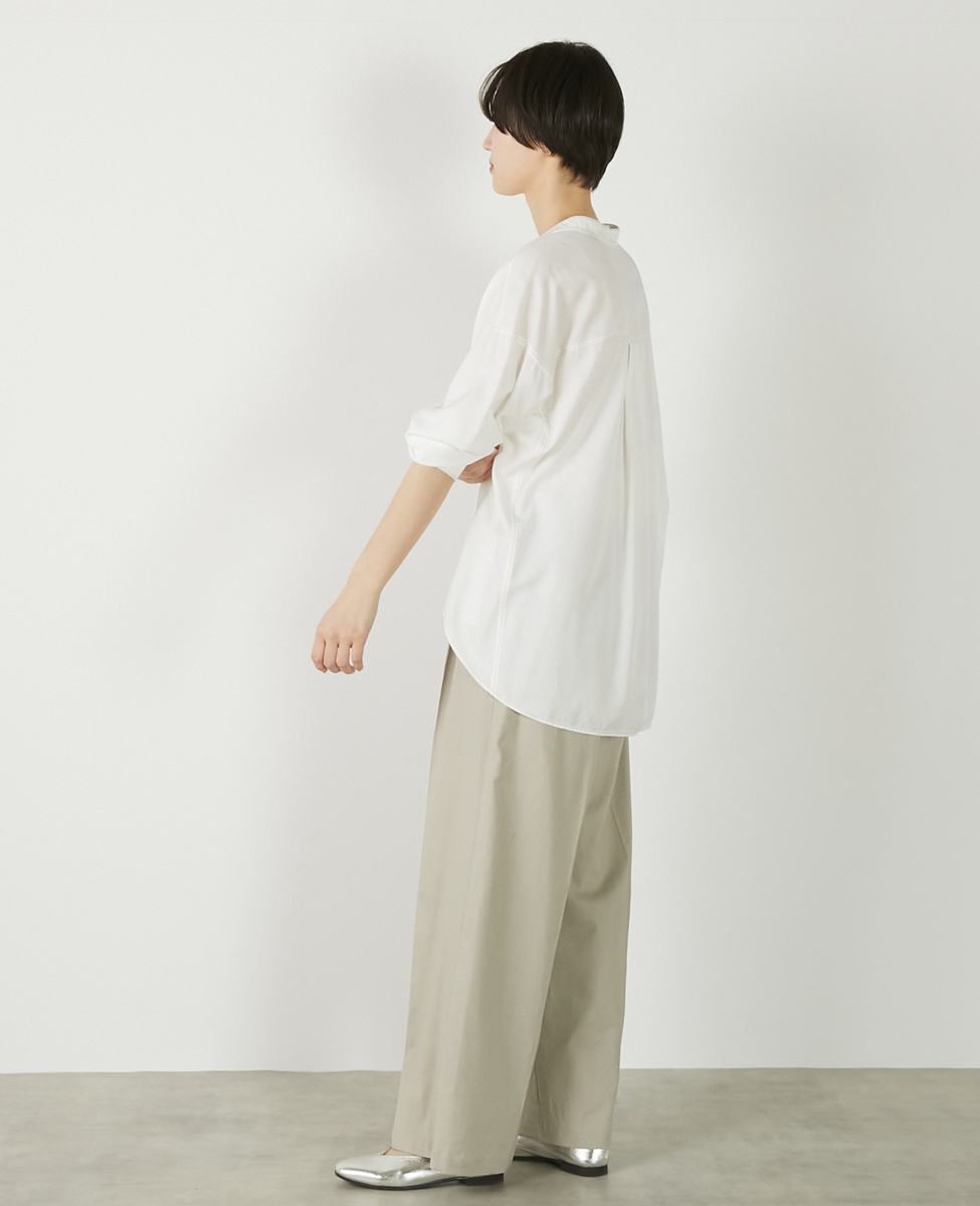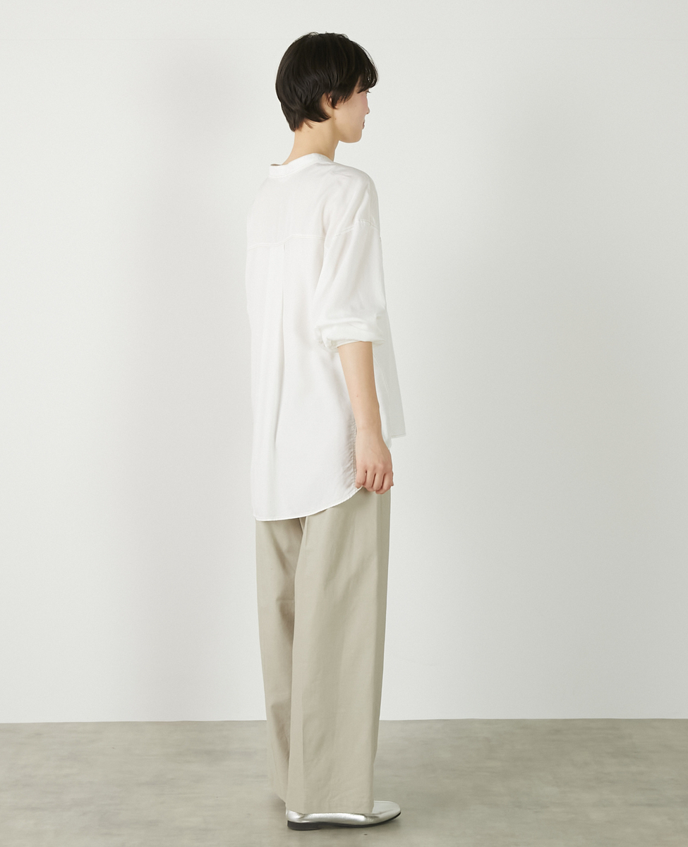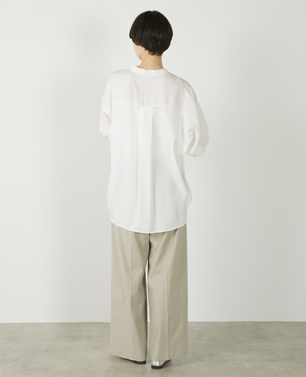 【パウダーデニムバンドカラーシャツ】
