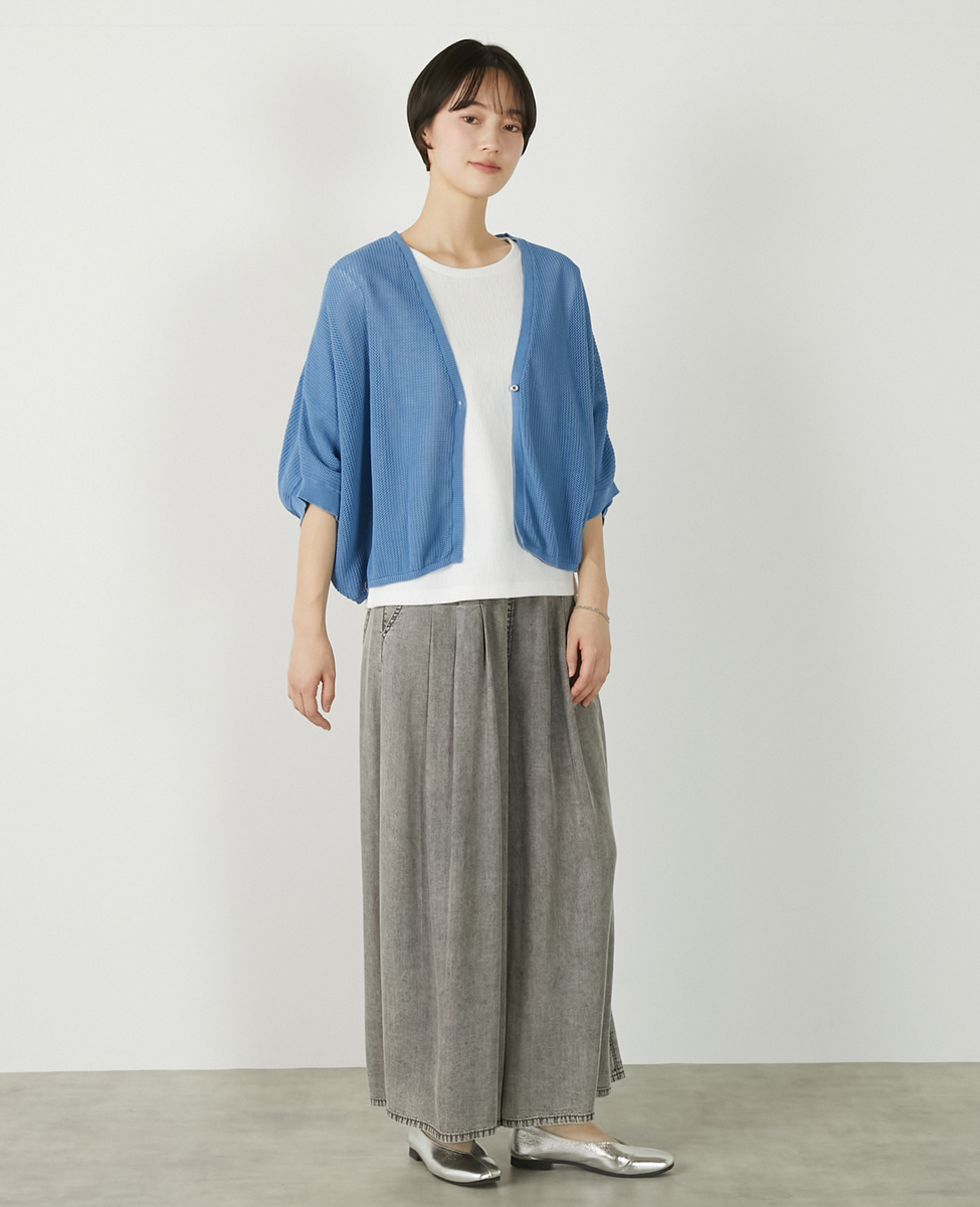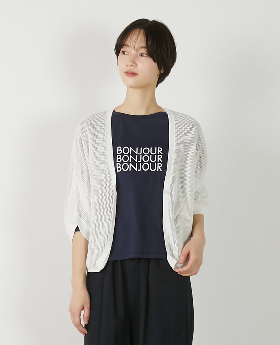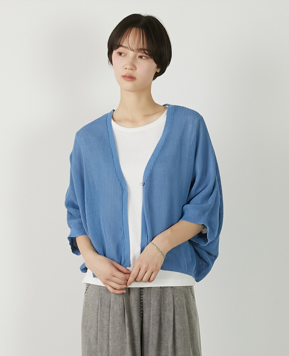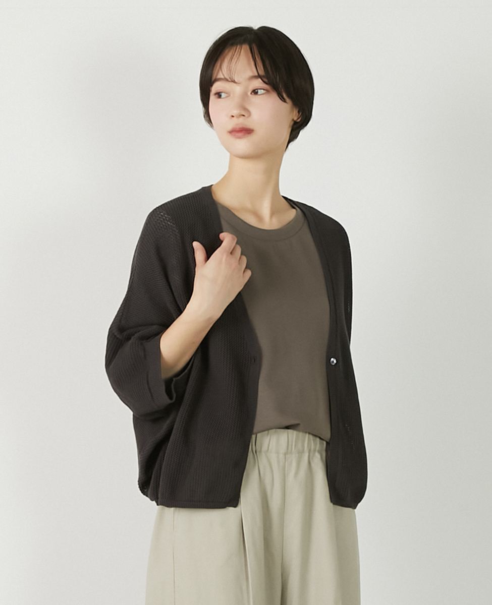 【メッシュ地柄コットンドルマンカーディガン】