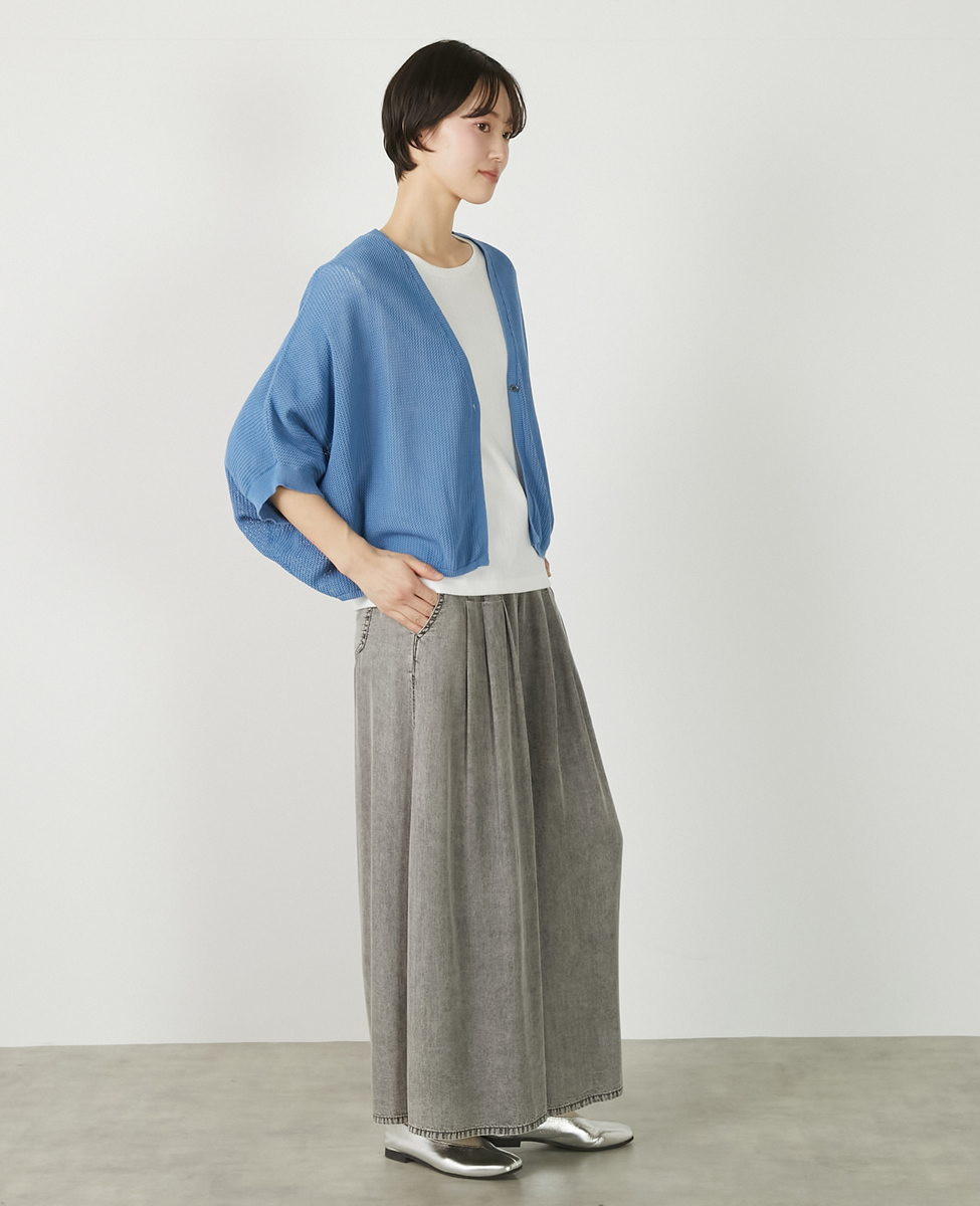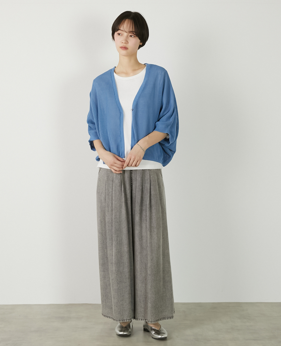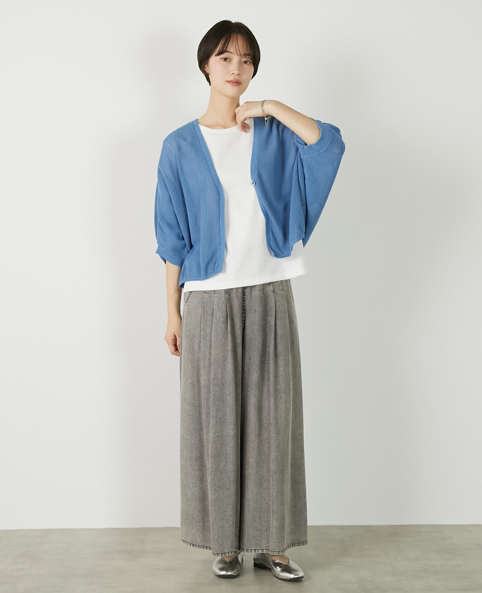 【メッシュ地柄コットンドルマンカーディガン】