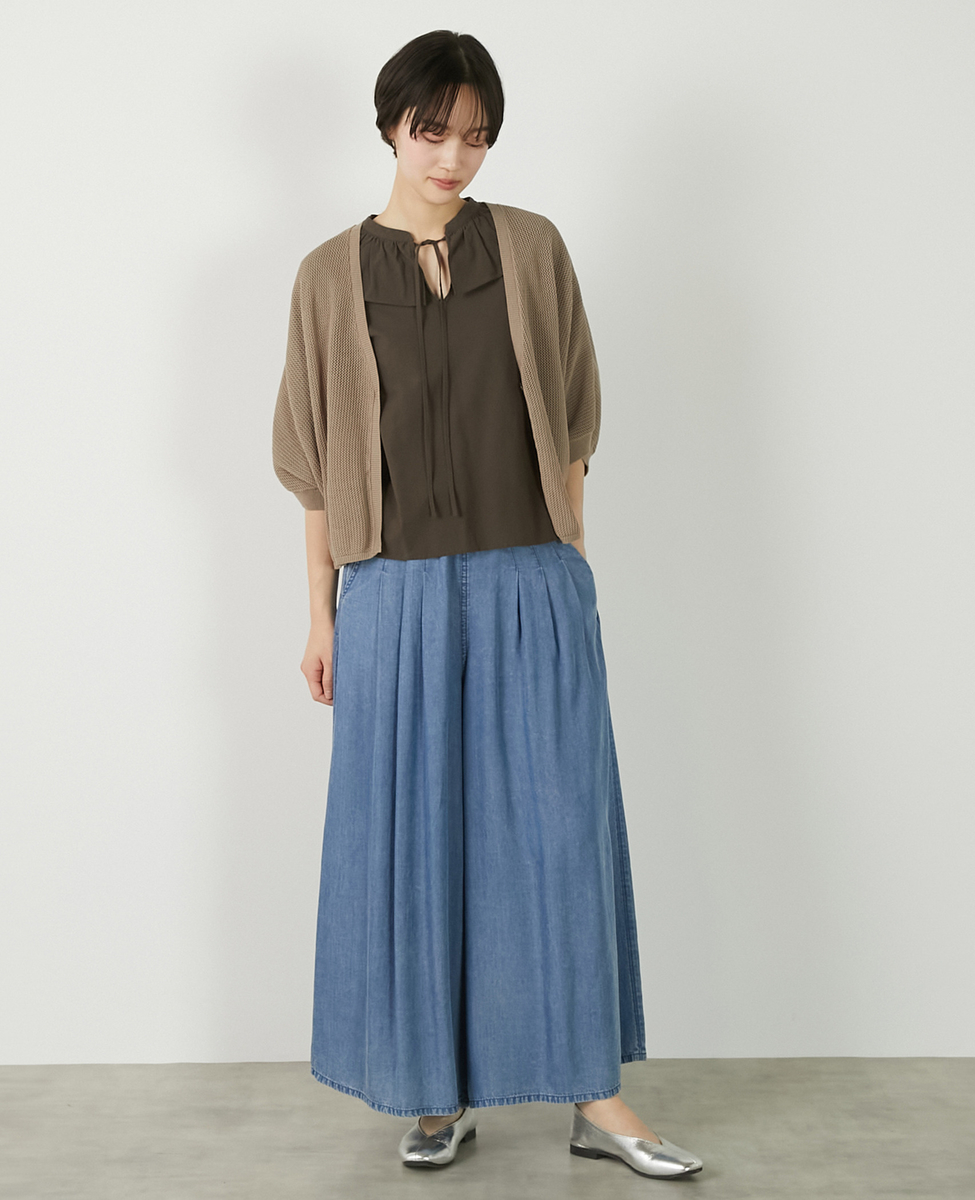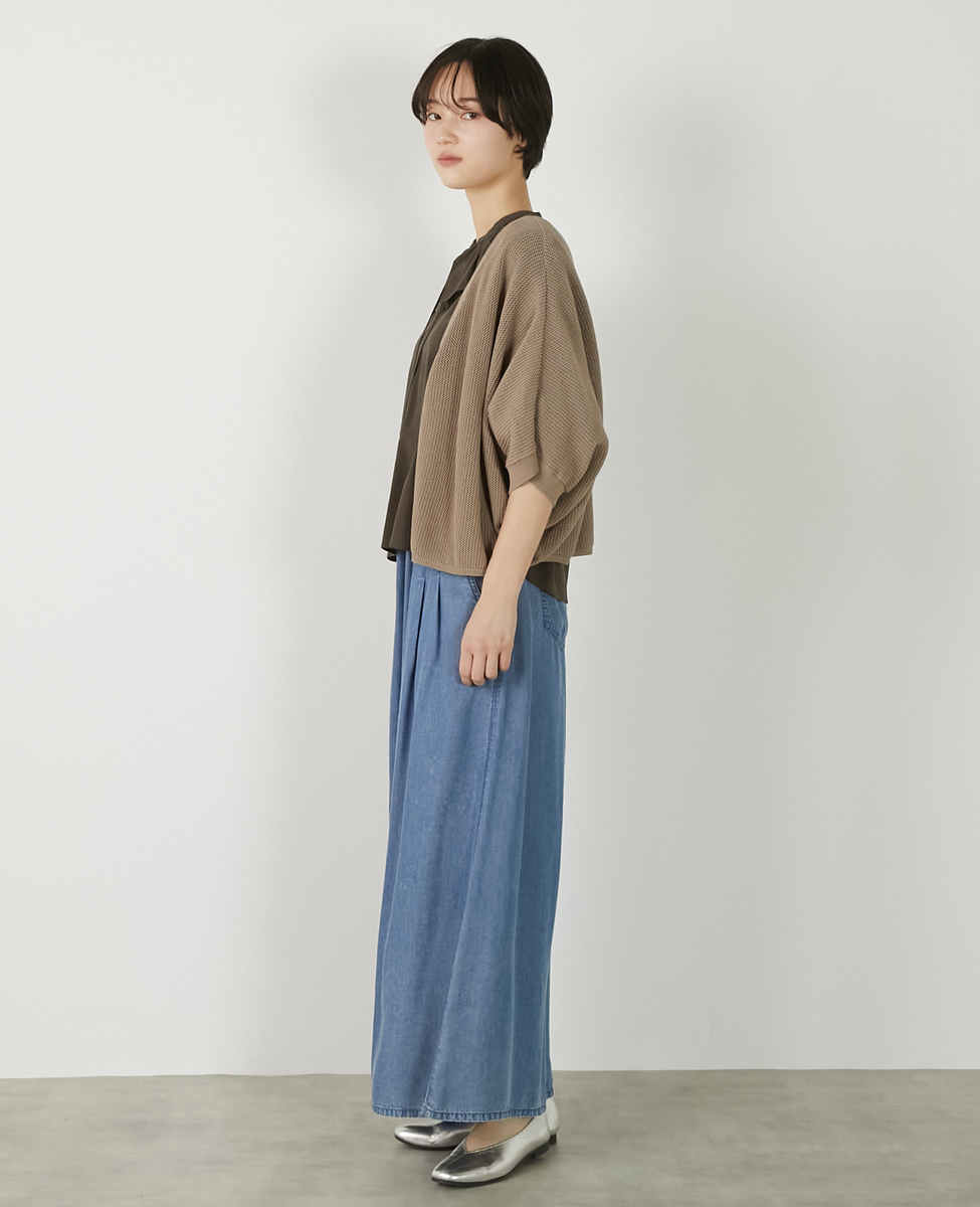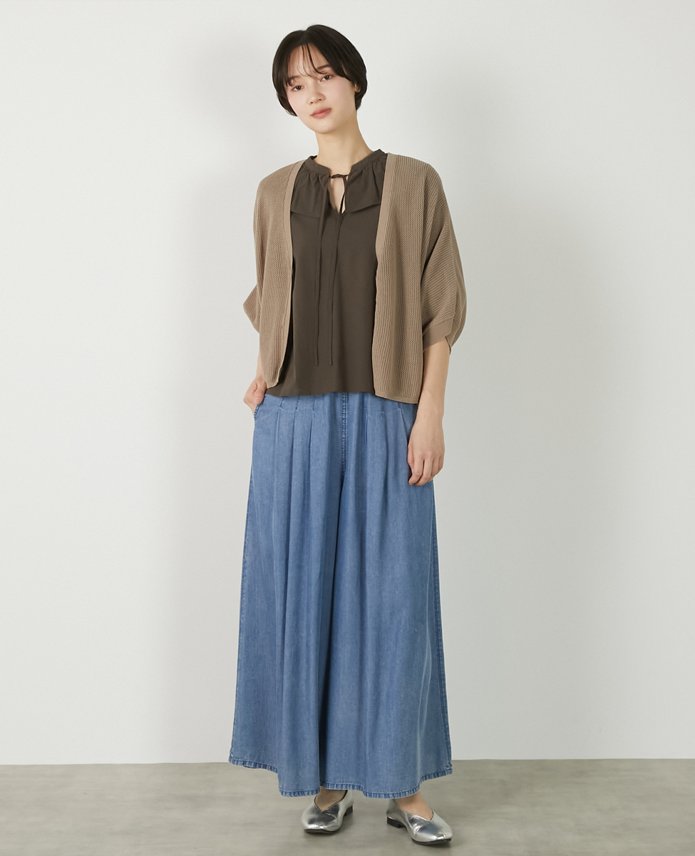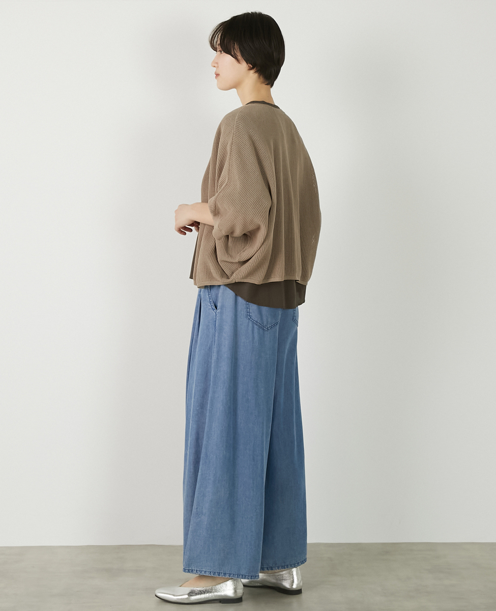 【メッシュ地柄コットンドルマンカーディガン】