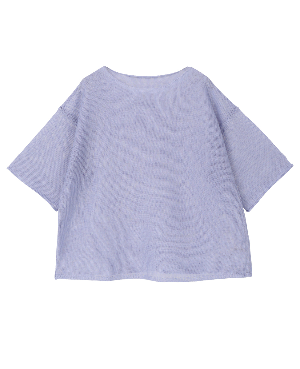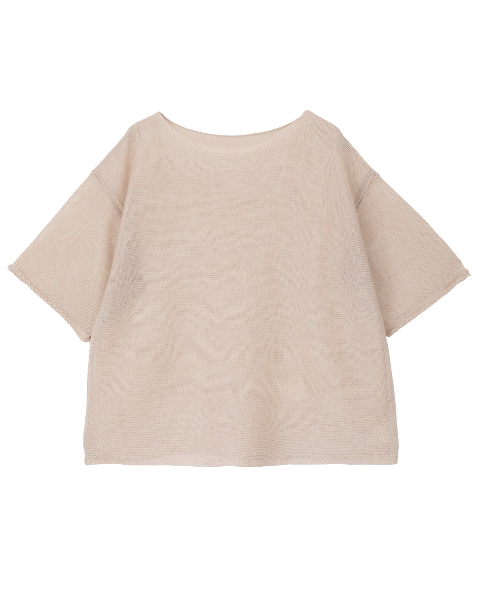 【麻タッチ天竺ボートネックハーフスリーブプルオーバー】