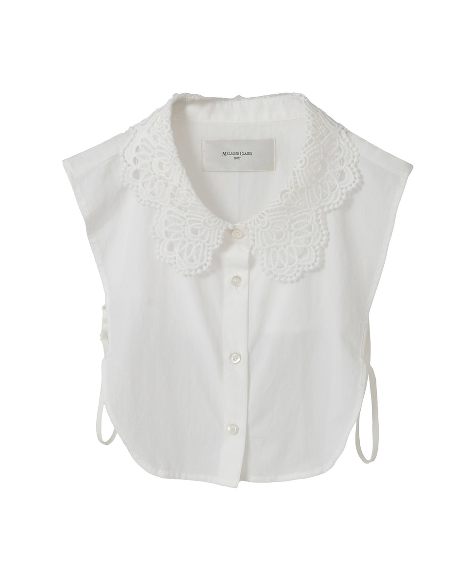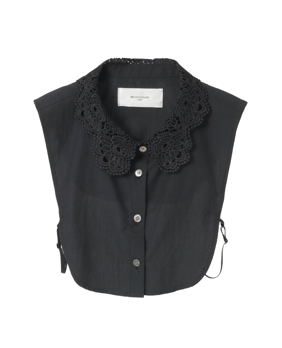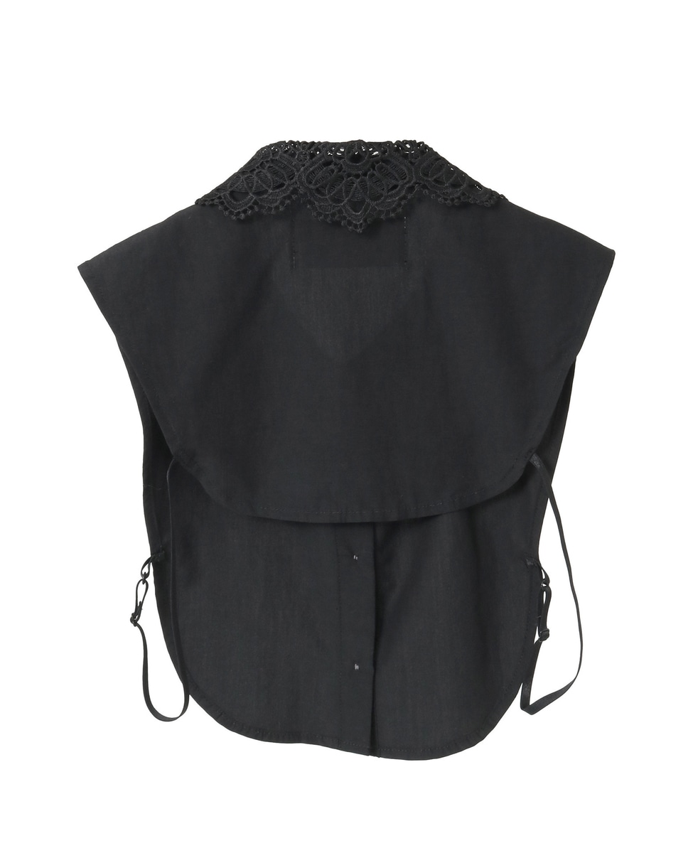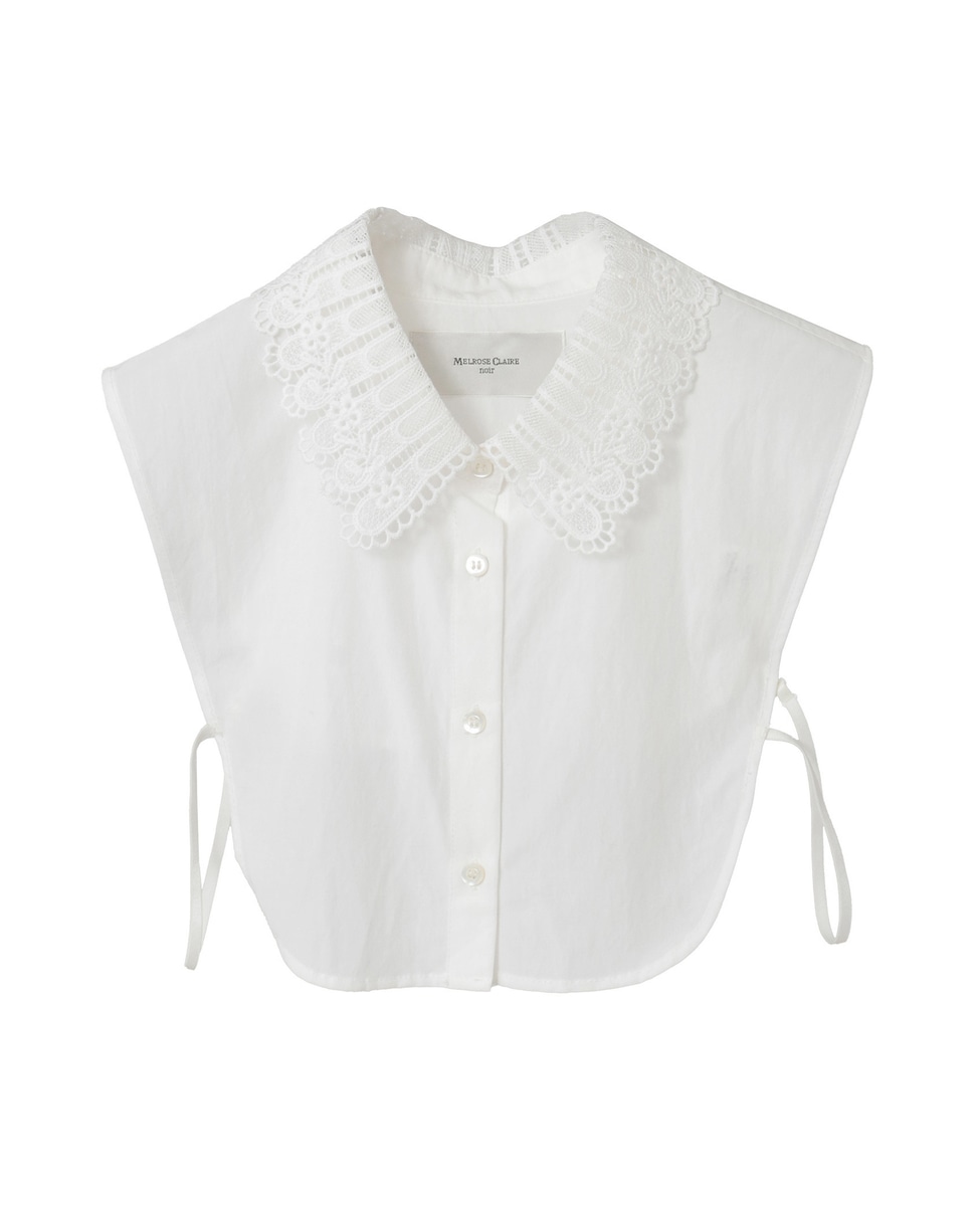 スタイリングに変化と華やかさをプラスしてくれる付け襟です。レースの襟でお顔周りをぱっと明るく見せてくれます。今季はホワイトの他にシックなブラックもご用意致しました。腕を通せるストラップ付きで、ずれにくい仕様になっています。オケージョンシーンから普段使いまで幅広く着回せる便利なアイテムです。