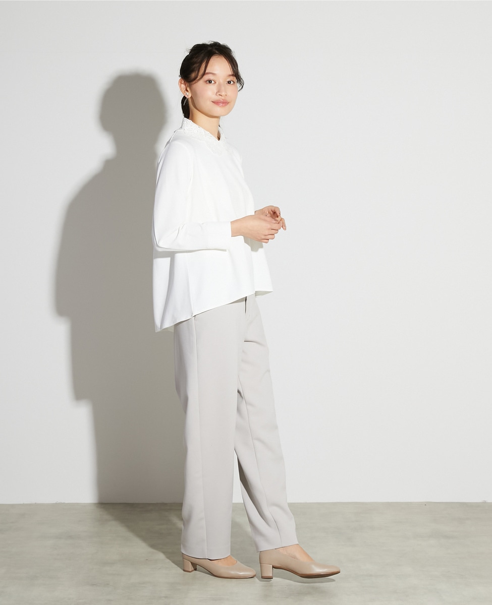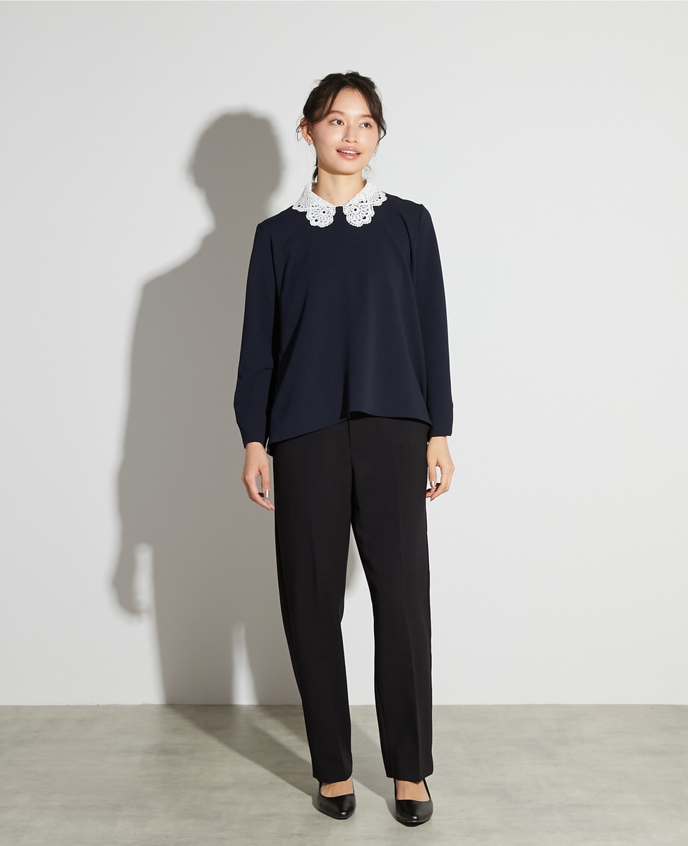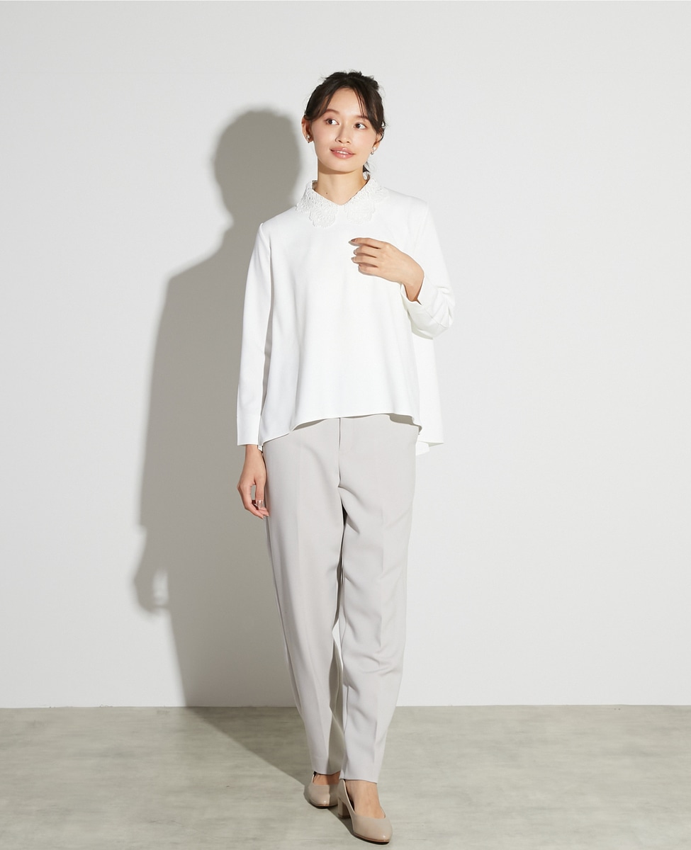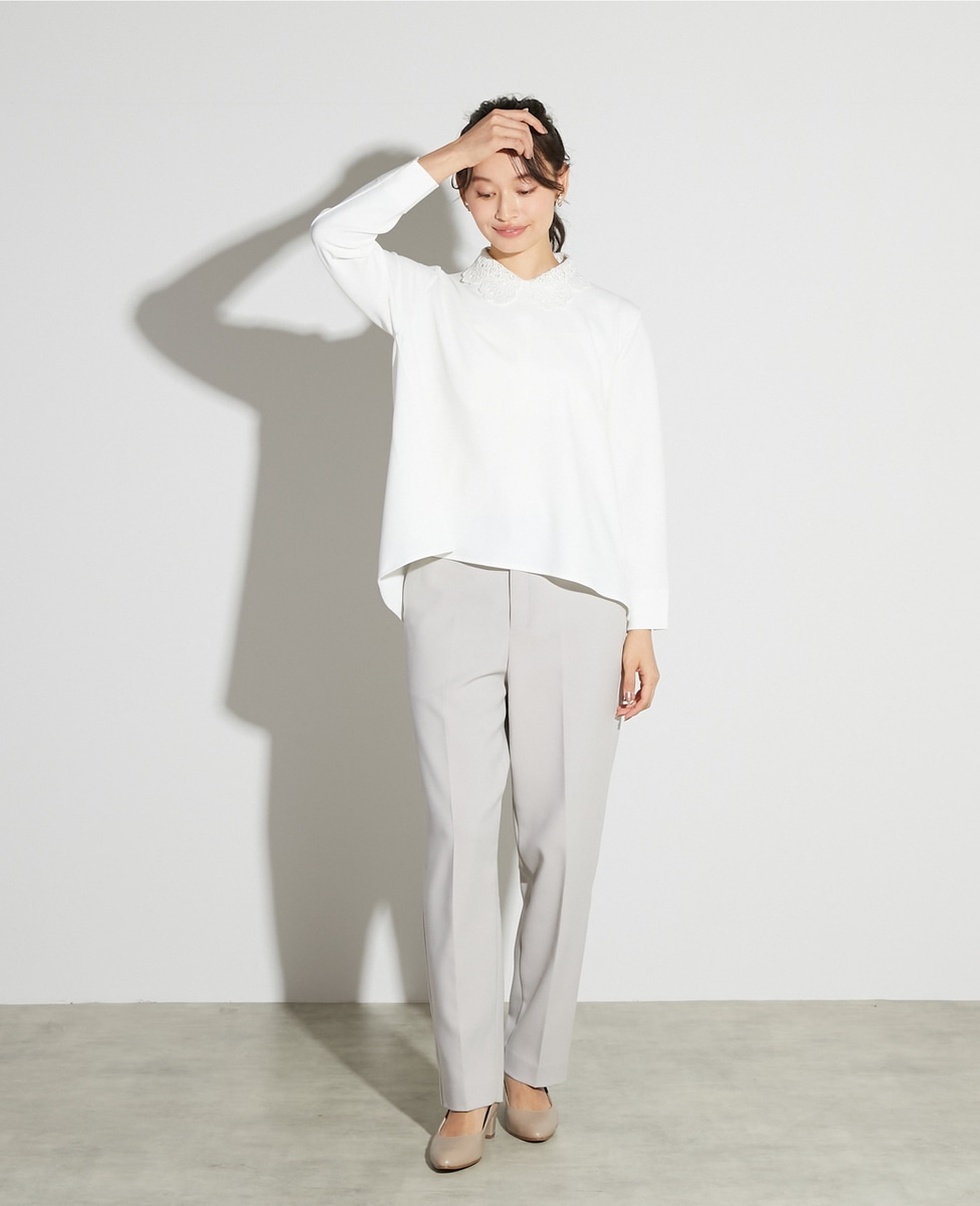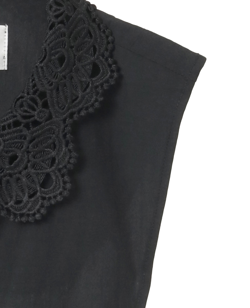 スタイリングに変化と華やかさをプラスしてくれる付け襟です。レースの襟でお顔周りをぱっと明るく見せてくれます。今季はホワイトの他にシックなブラックもご用意致しました。腕を通せるストラップ付きで、ずれにくい仕様になっています。オケージョンシーンから普段使いまで幅広く着回せる便利なアイテムです。