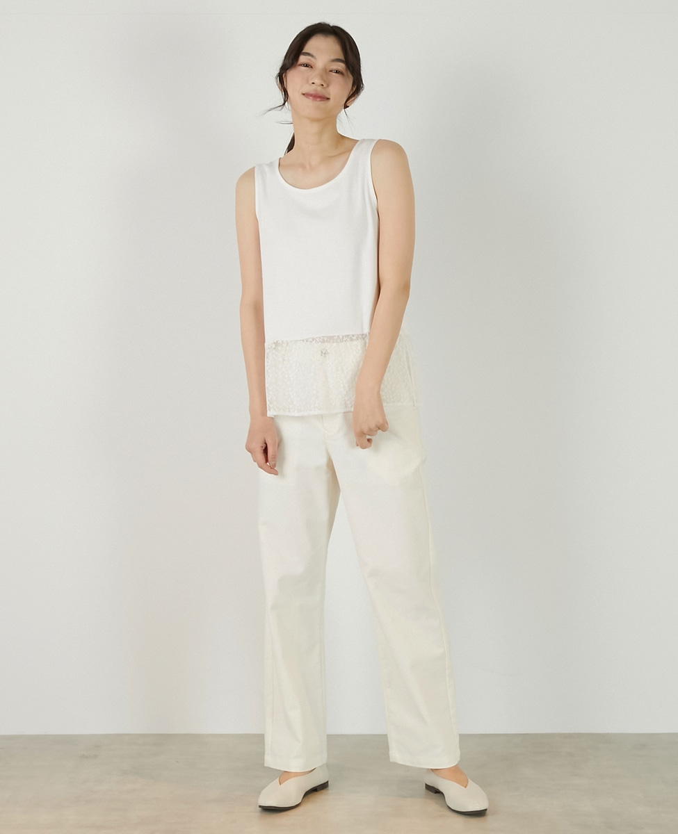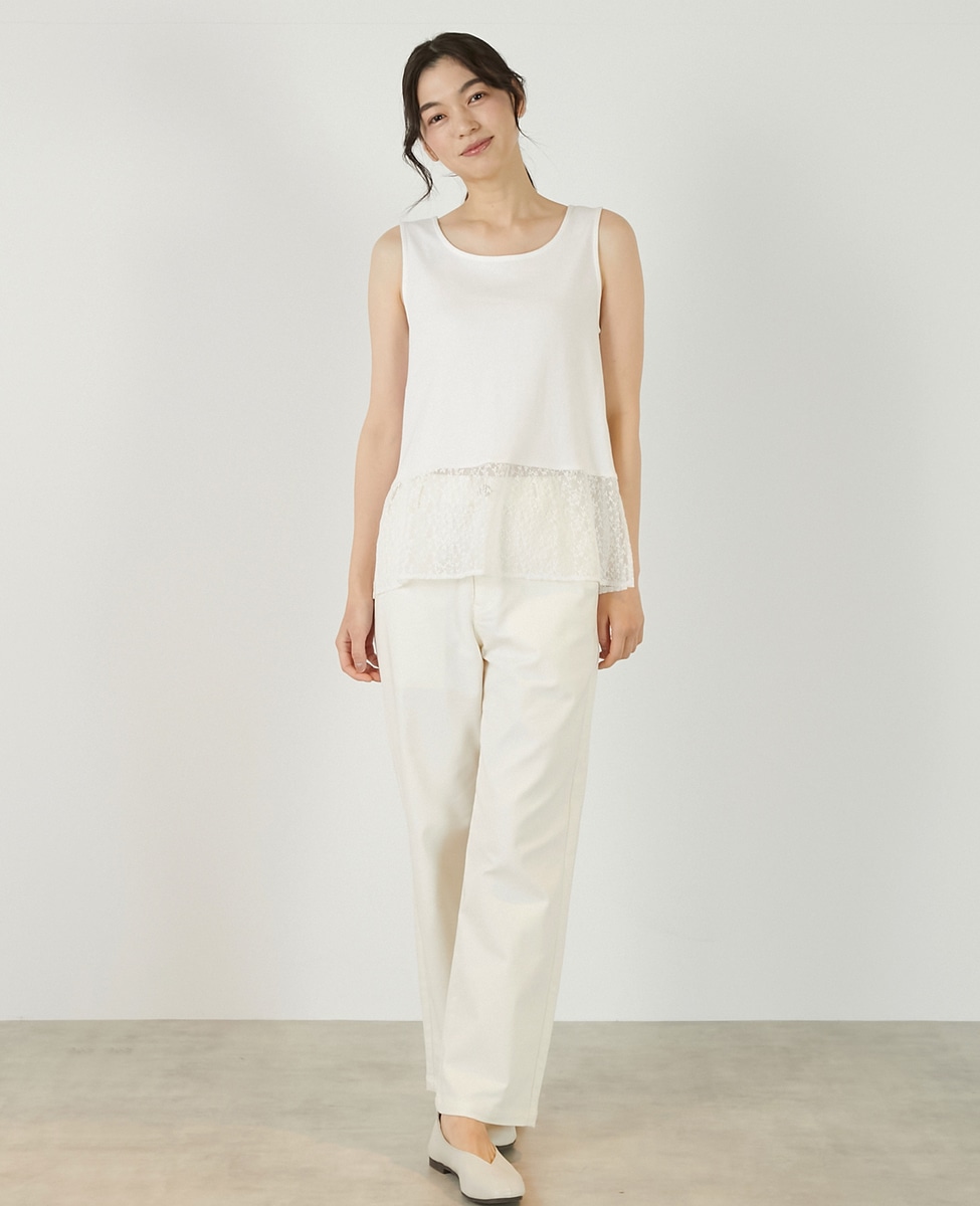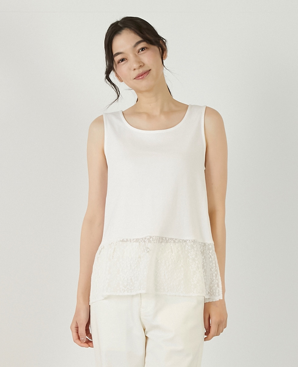 • 【コットンフライス+リーフレースタンクトップ】 詳細画像 オフホワイト 1