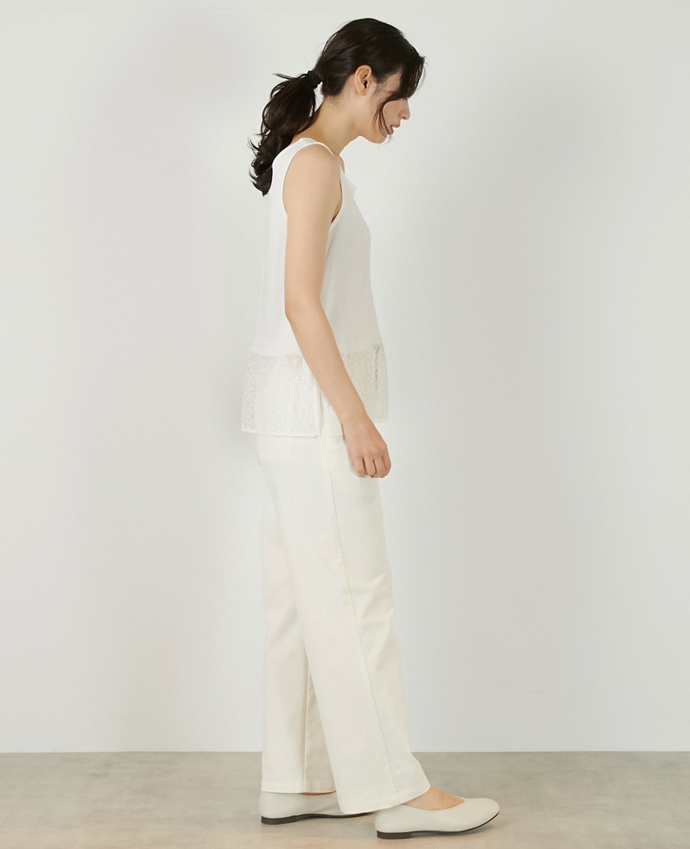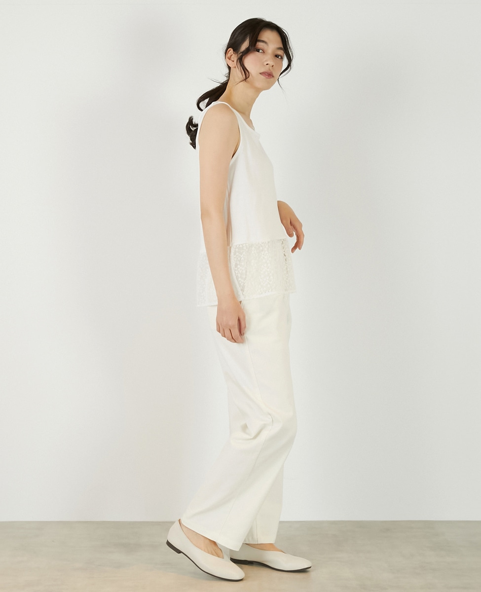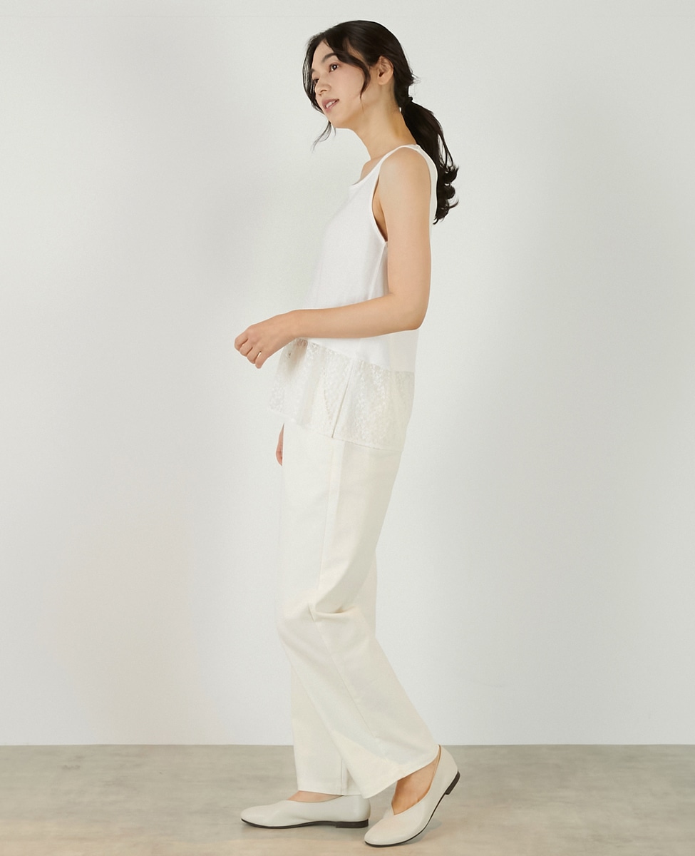 • 【コットンフライス+リーフレースタンクトップ】 詳細画像 オフホワイト 4