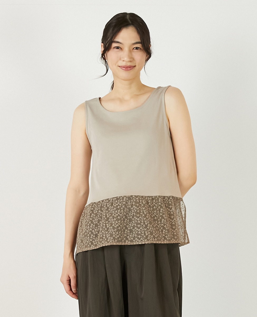 • 【コットンフライス+リーフレースタンクトップ】 詳細画像 ベージュ 1