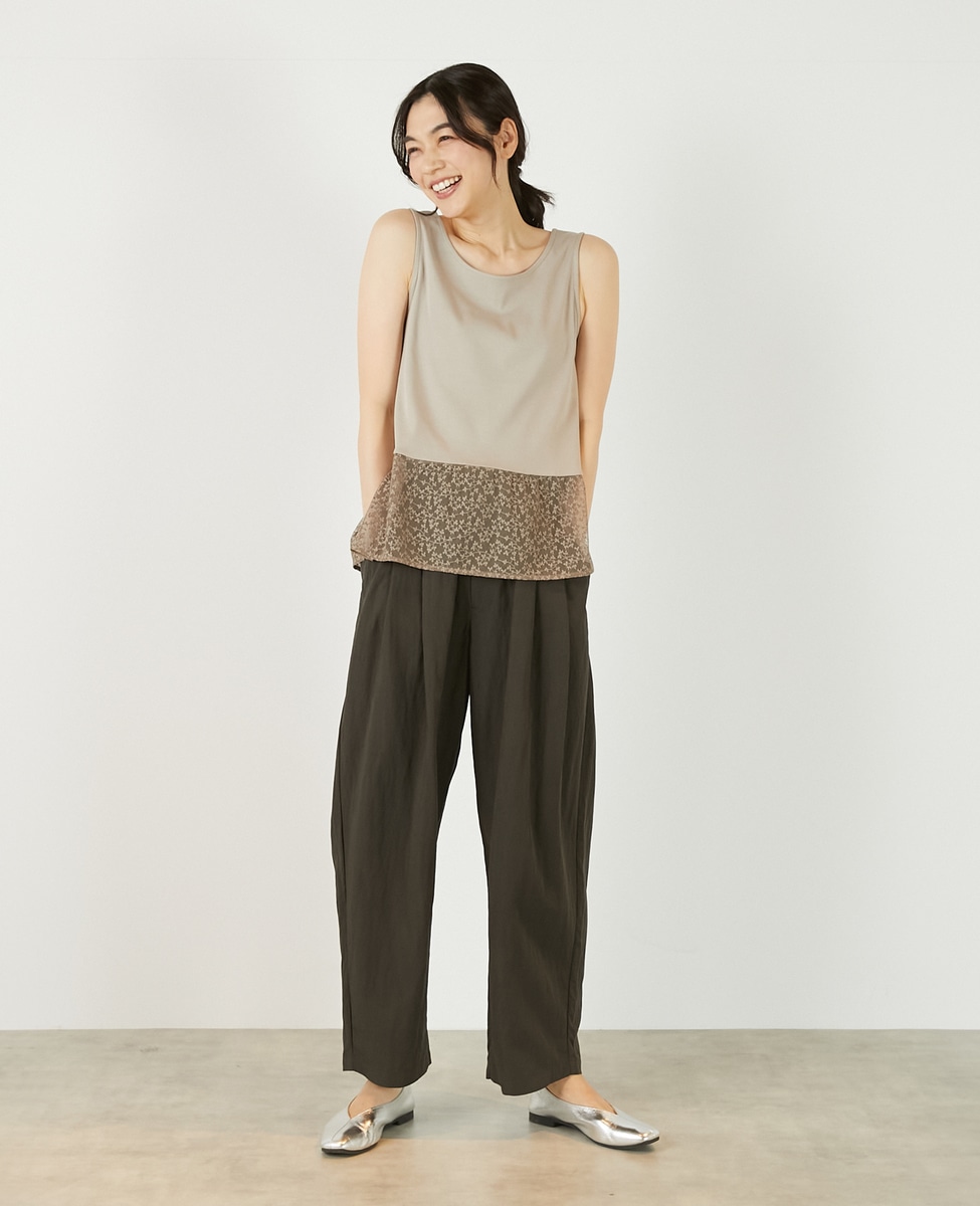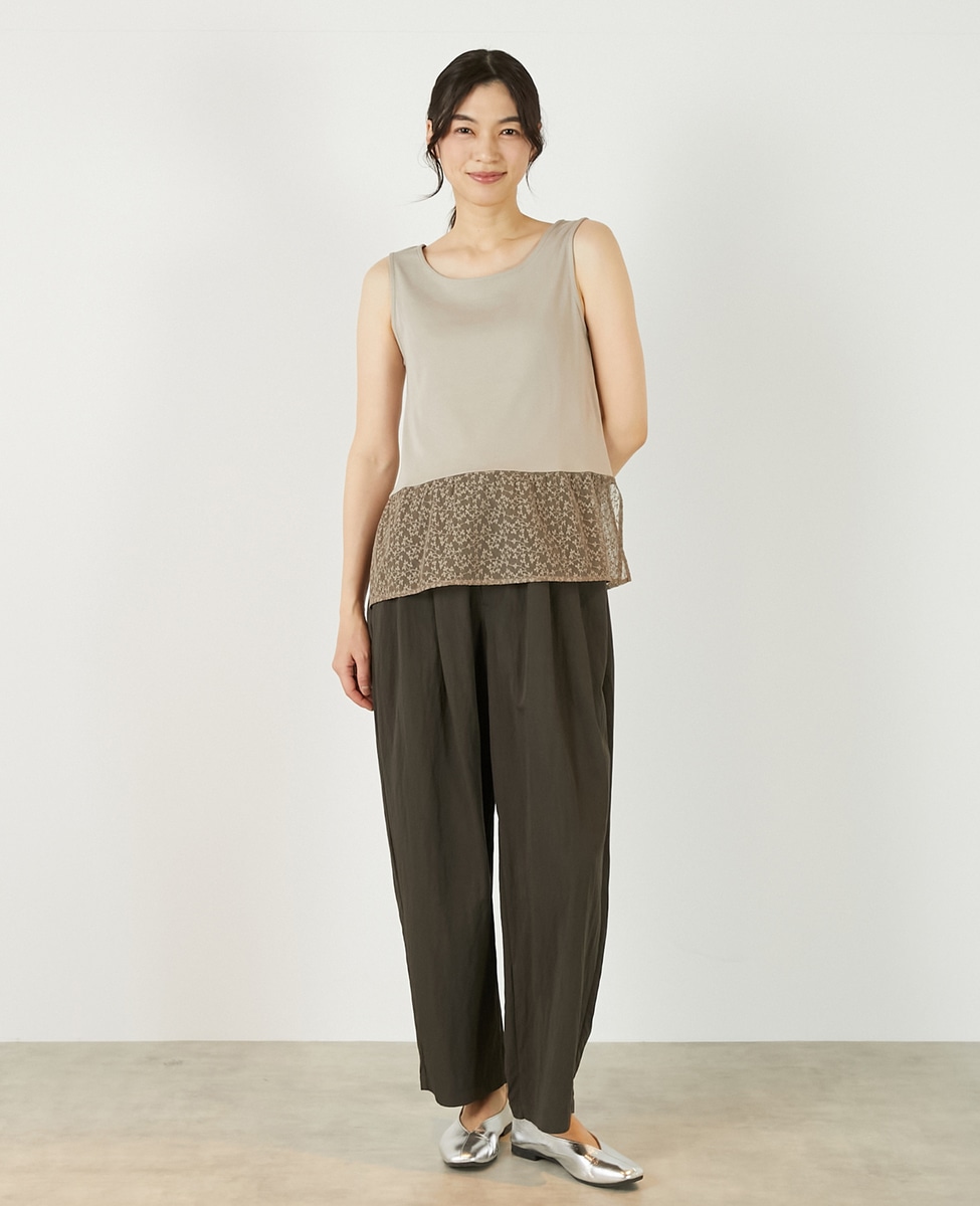 • 【コットンフライス+リーフレースタンクトップ】 詳細画像 ベージュ 3