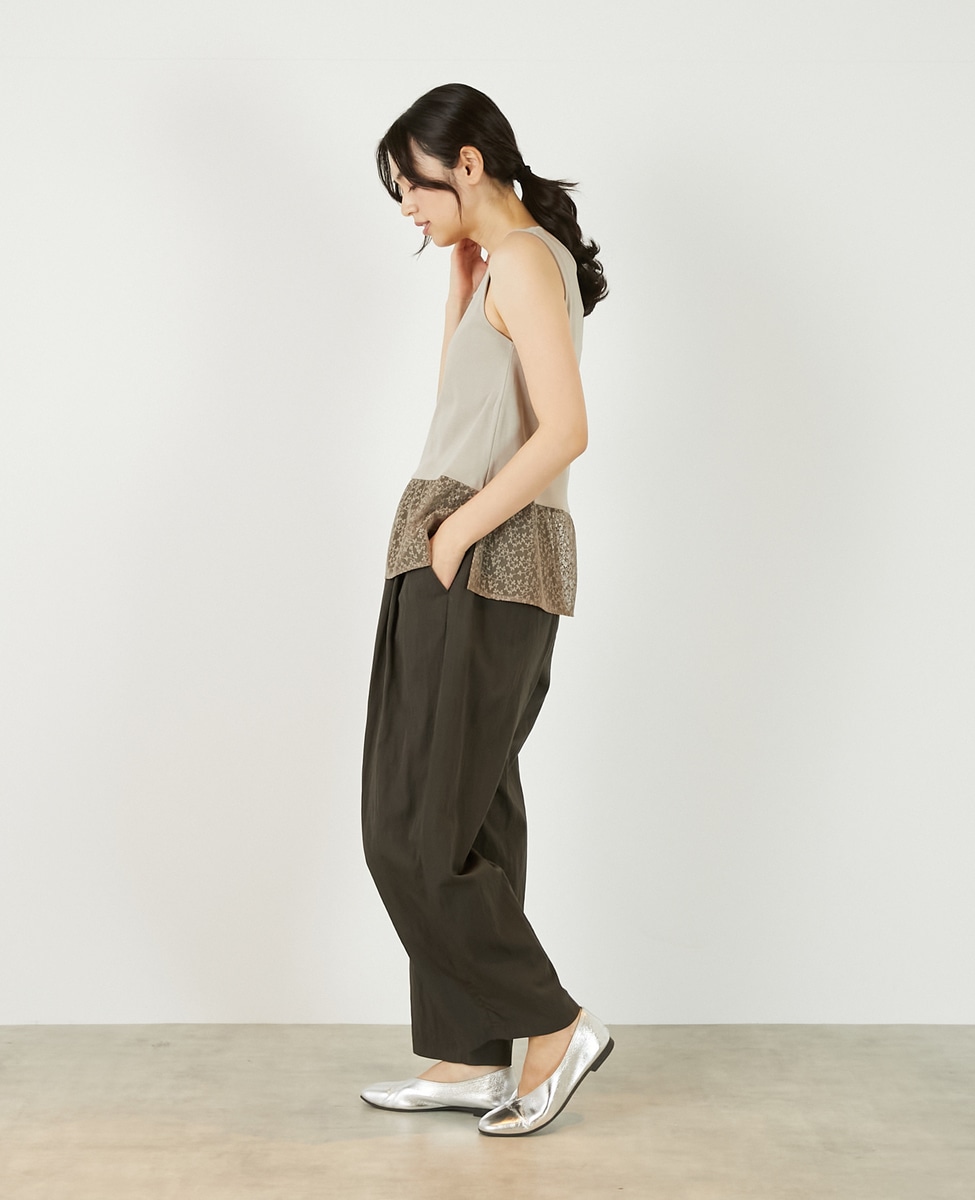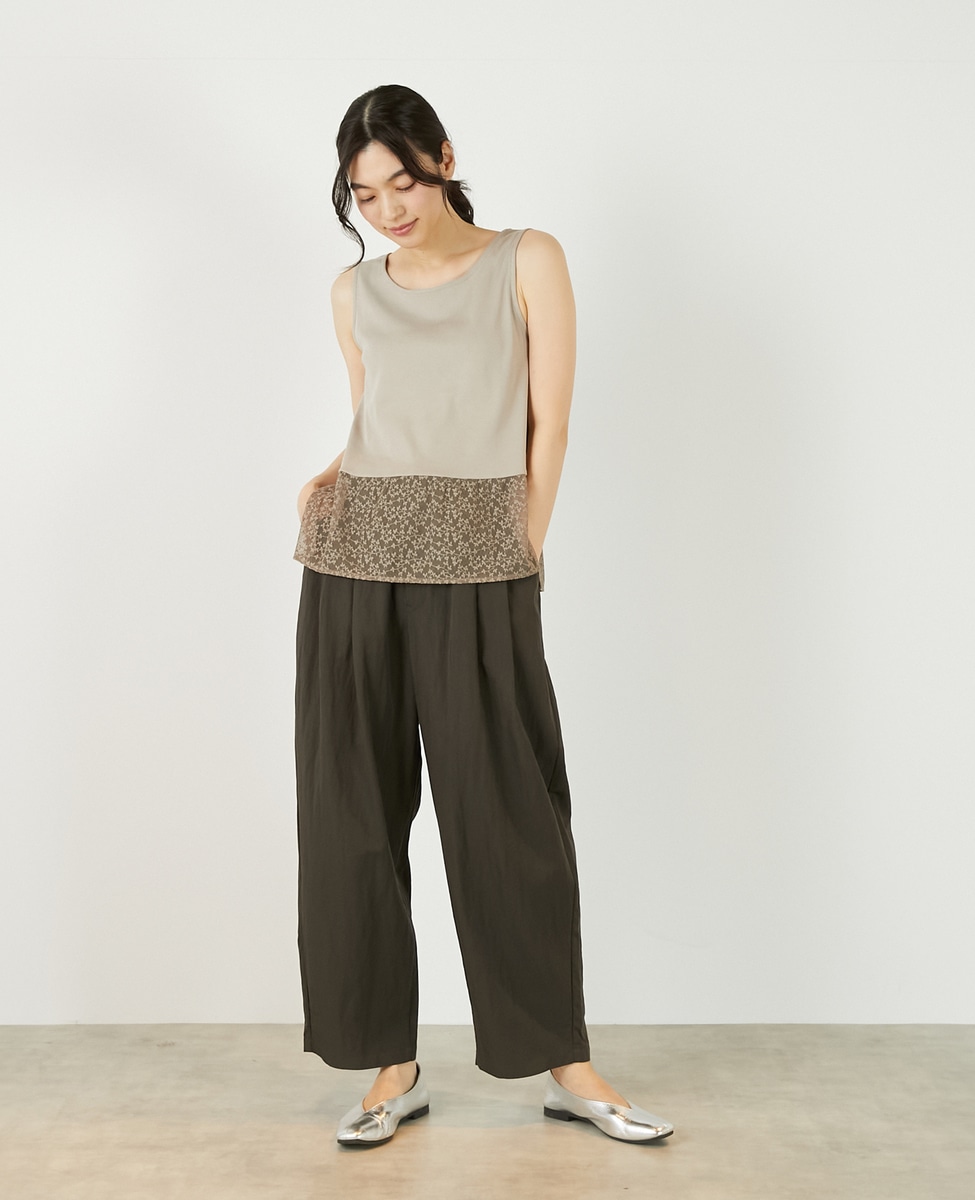 • 【コットンフライス+リーフレースタンクトップ】 詳細画像 ベージュ 8
