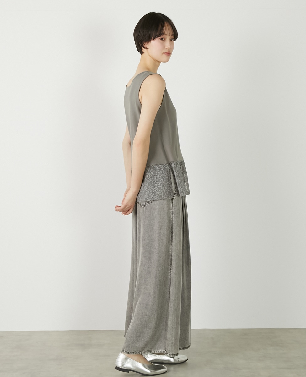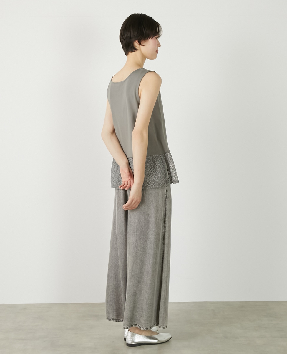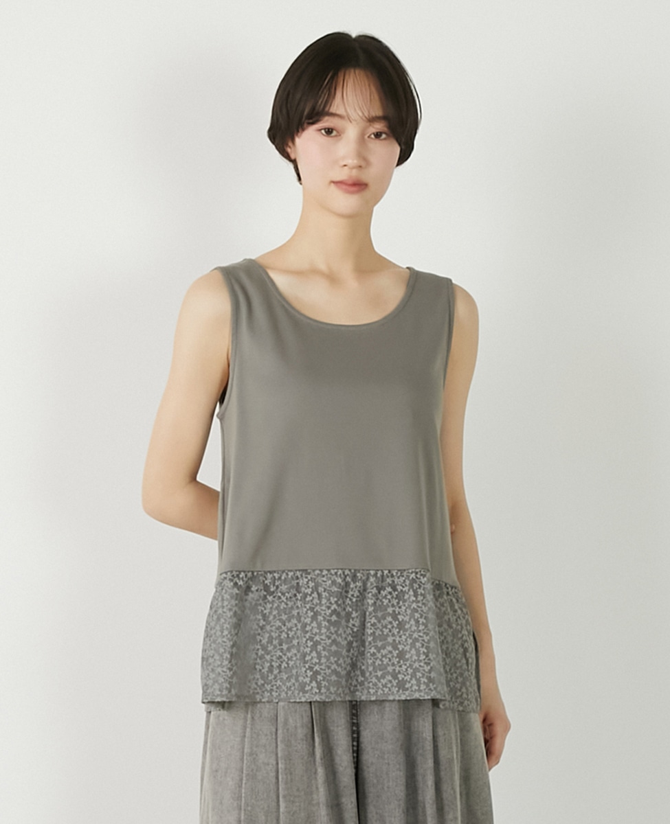 • 【コットンフライス+リーフレースタンクトップ】 詳細画像 グレー 4