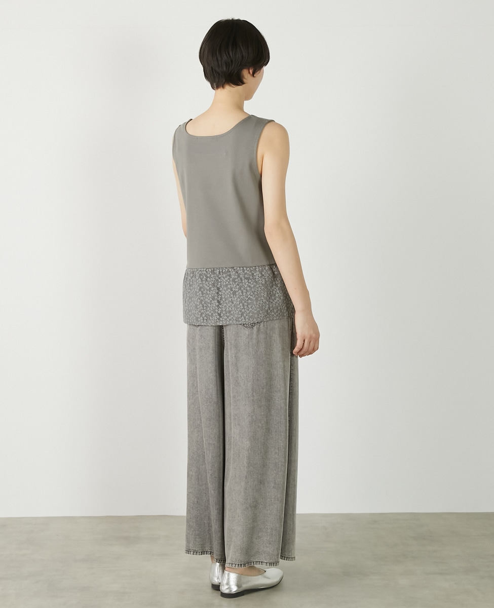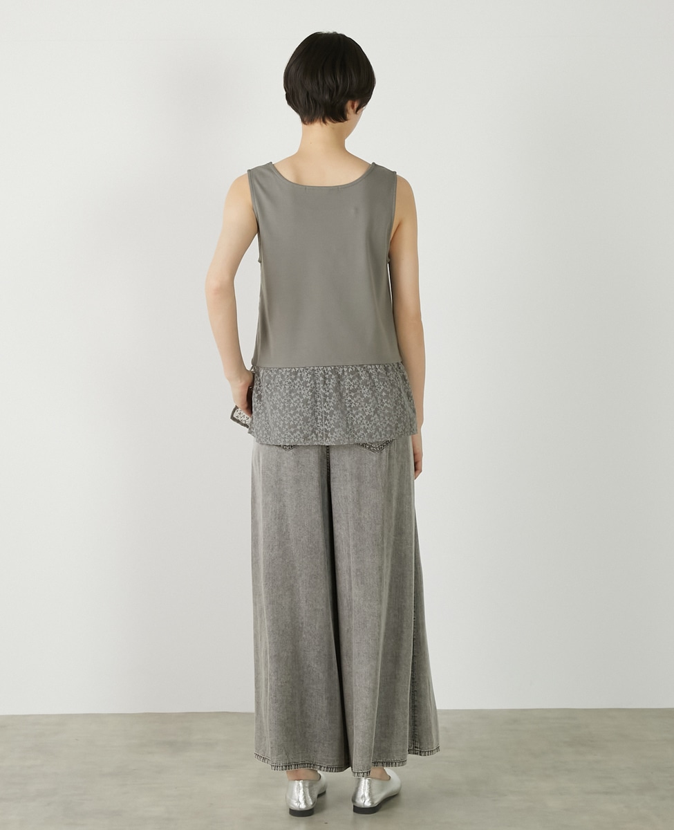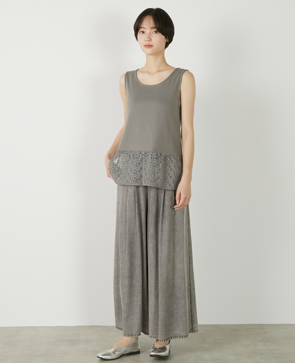 • 【コットンフライス+リーフレースタンクトップ】 詳細画像 グレー 5