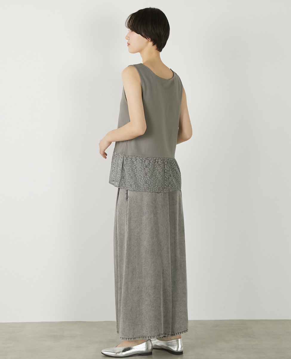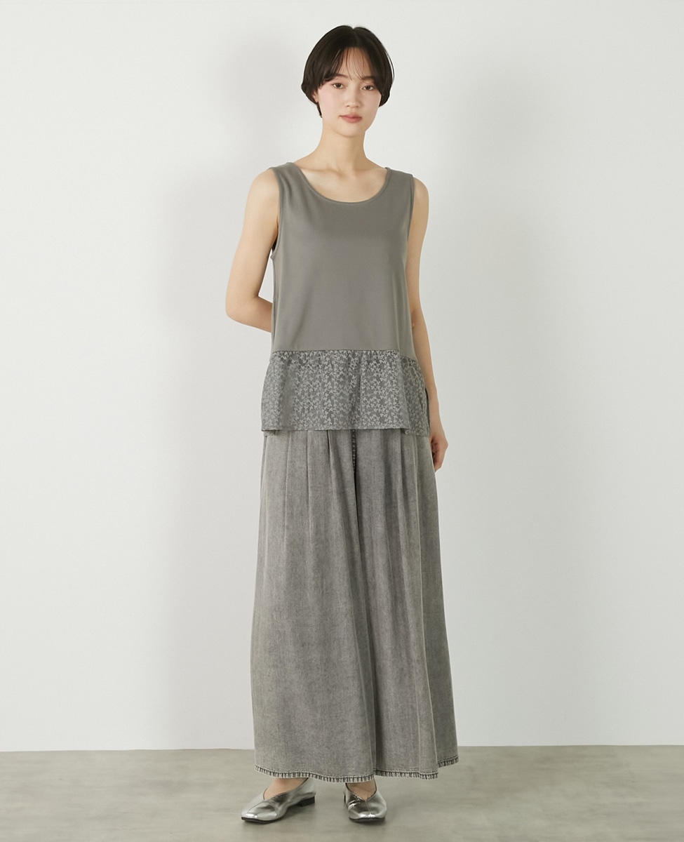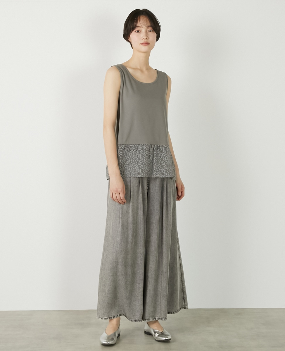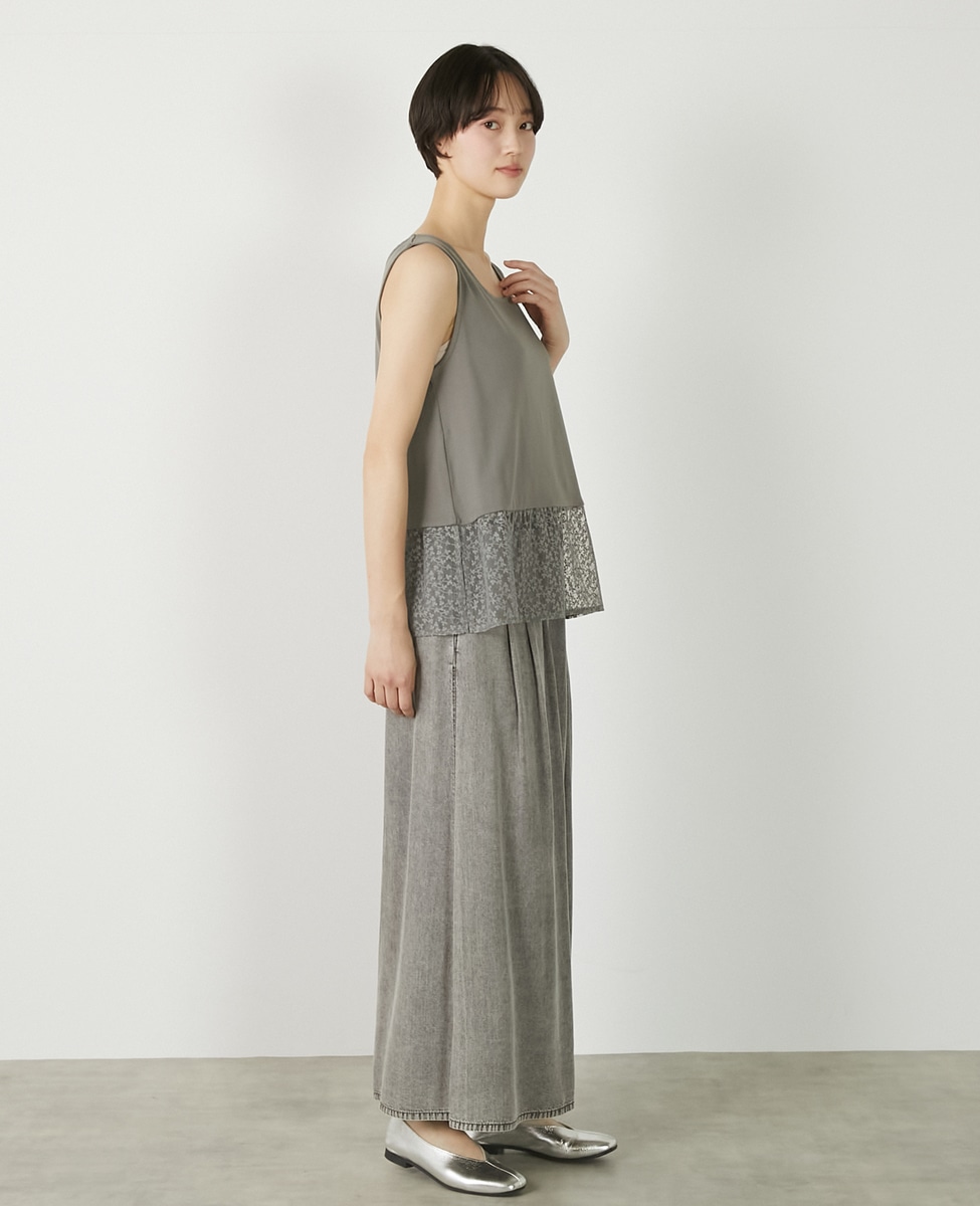 • 【コットンフライス+リーフレースタンクトップ】 詳細画像 グレー 5
