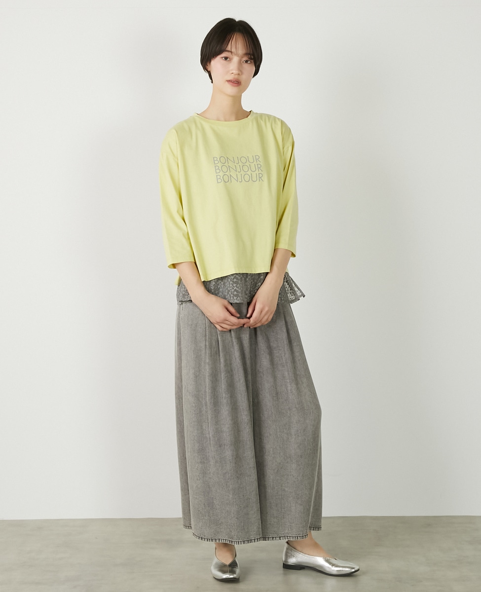 肌触りの良いコットンフライスにリトルリーフレースを切り替えてレイヤードインナーにしました。ロゴT、カットソー、ニット、ブラウス等に合わせてお使いいただけます。色違いでもオススメなタンクトップです。