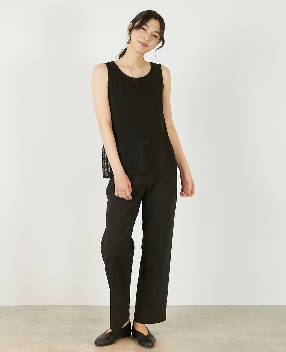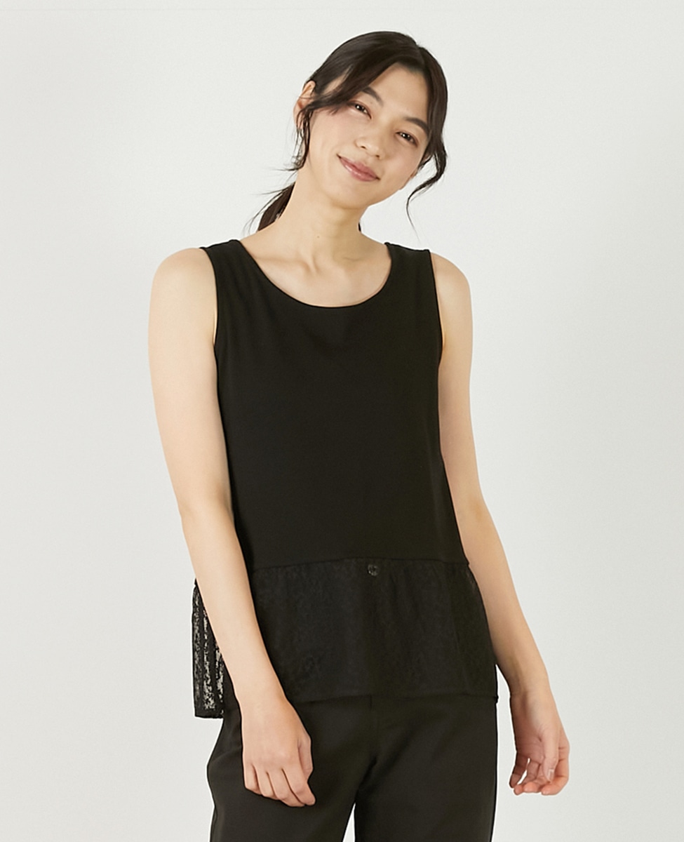• 【コットンフライス+リーフレースタンクトップ】 詳細画像 ブラック 1