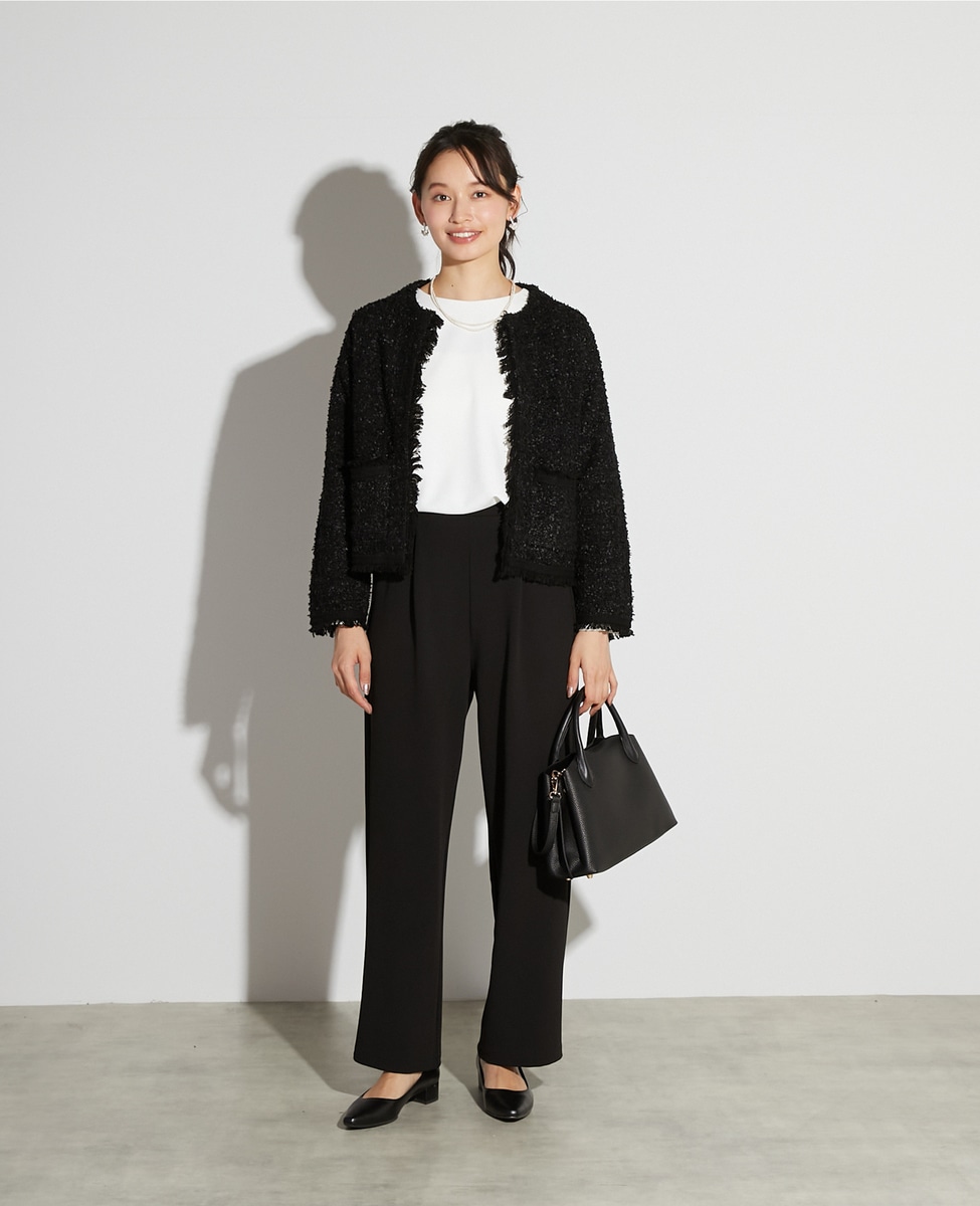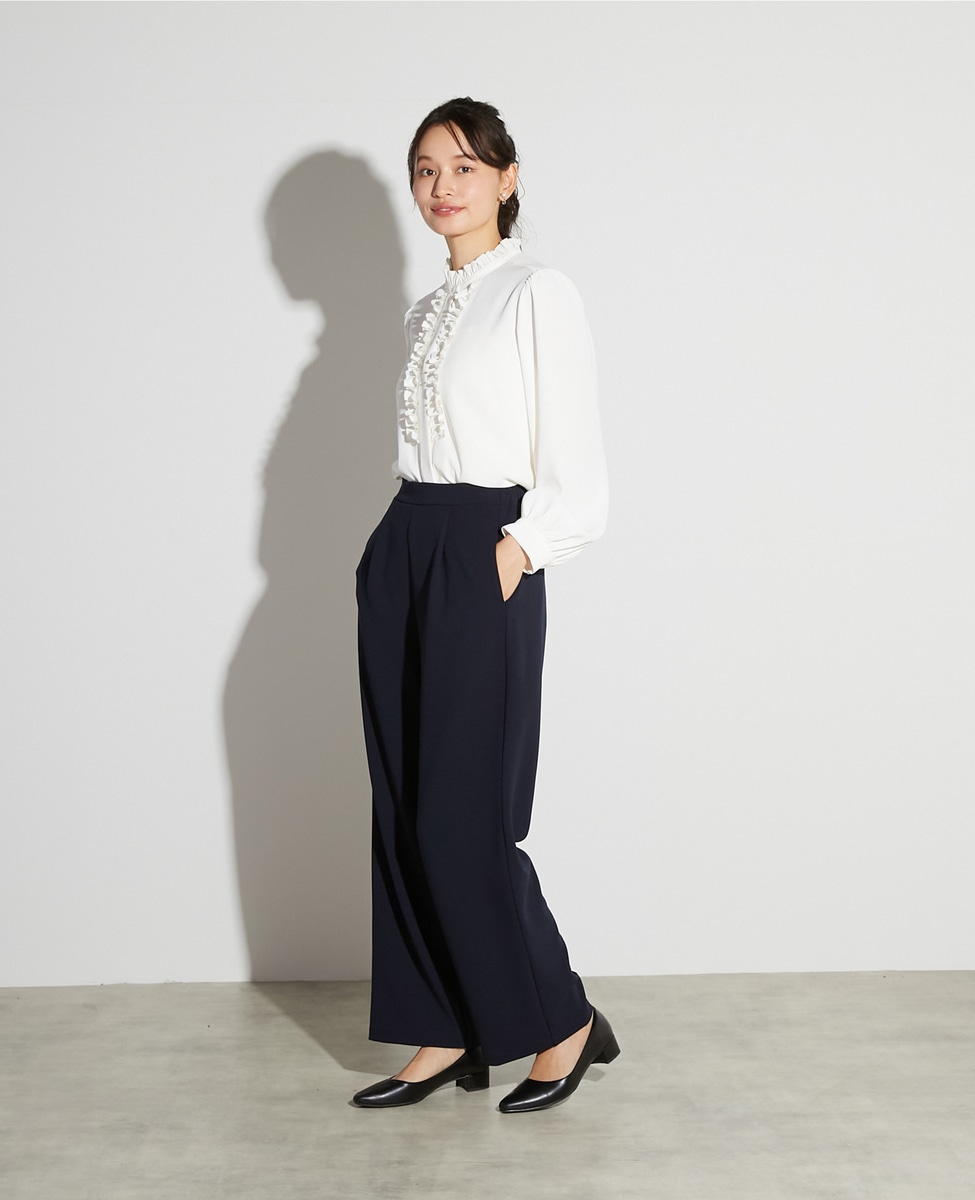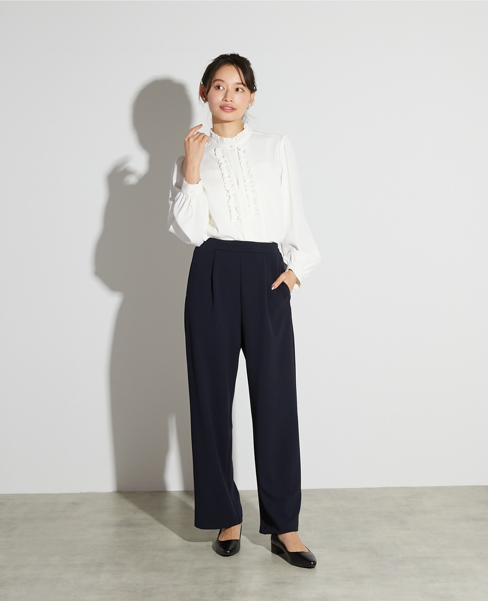 【noir】カットジョーゼット1タックストレートパンツ(一部WEB限定サイズ)(セットアップ可)