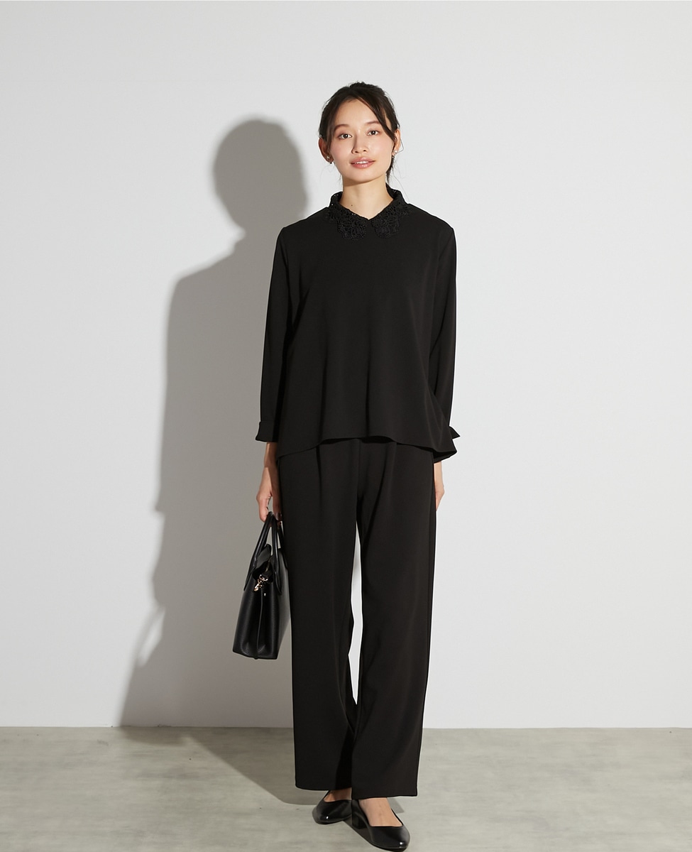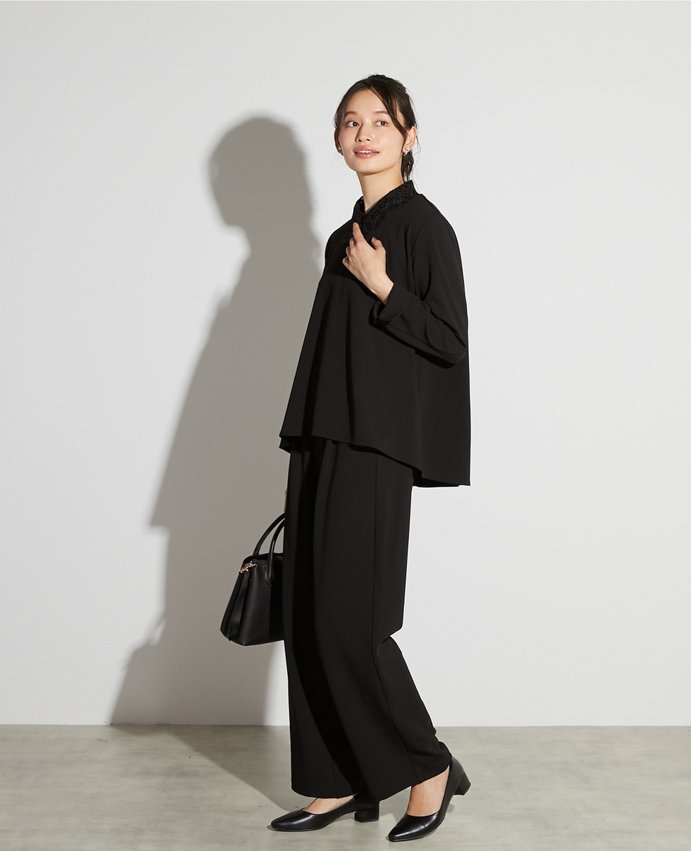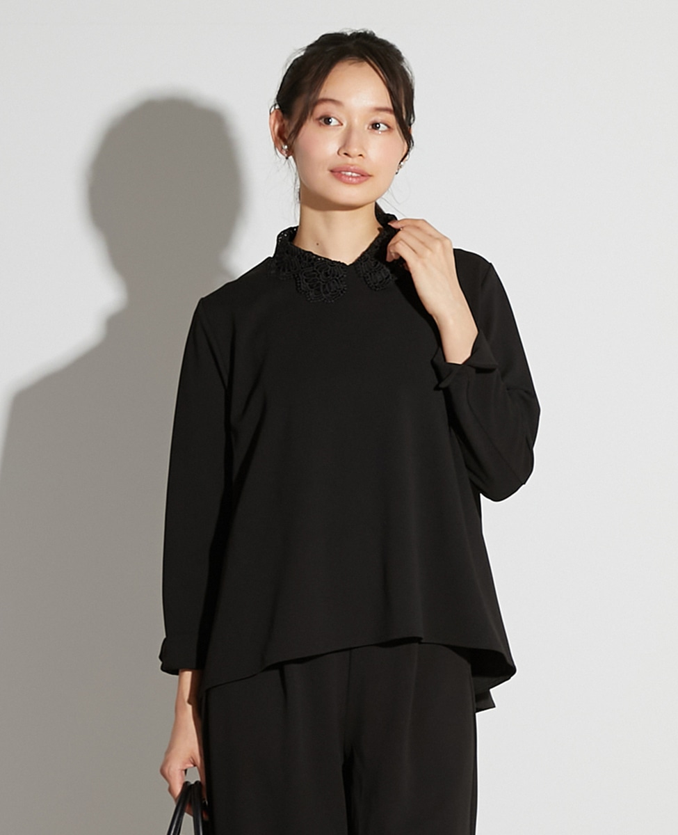 【noir】カットジョーゼットバックテールブラウス(セットアップ可)