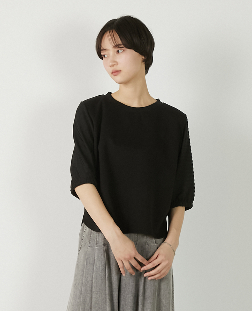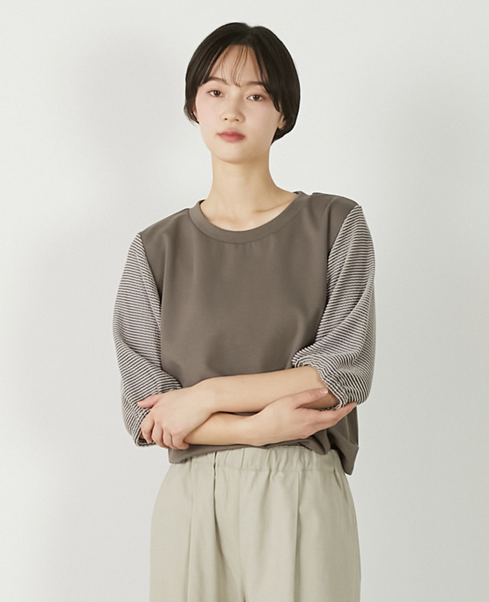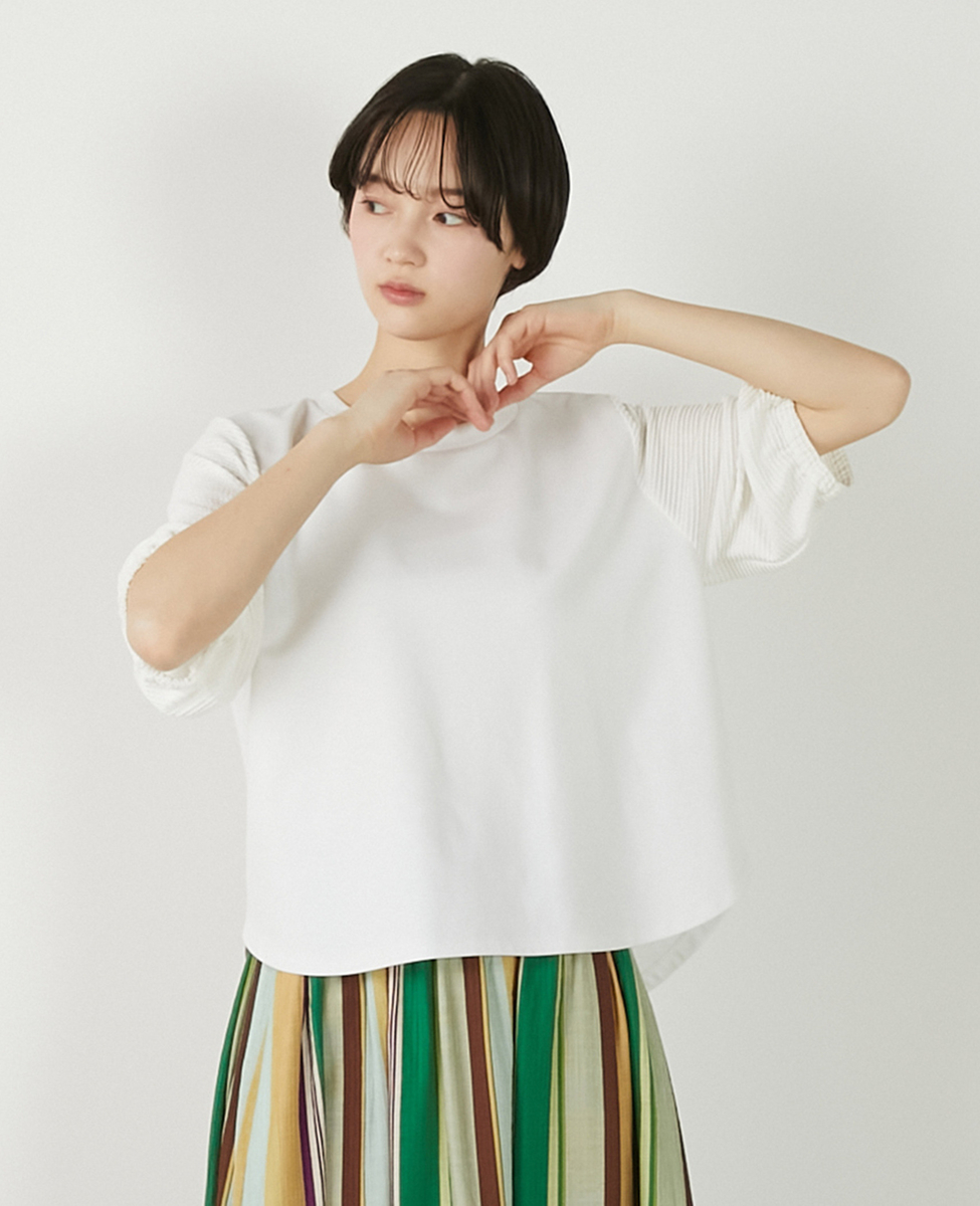 【異素材バルーンスリーブカットプルオーバー】