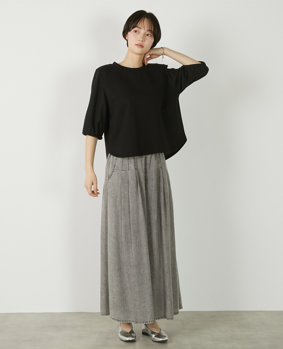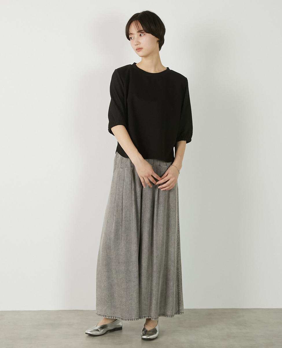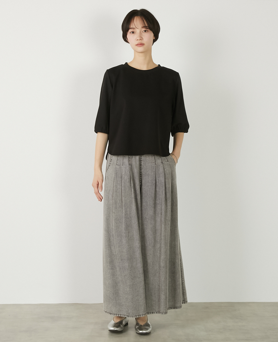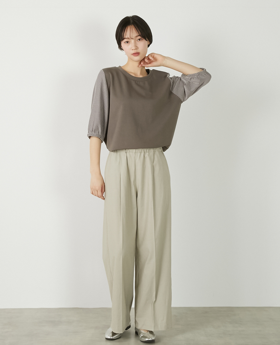 【異素材バルーンスリーブカットプルオーバー】