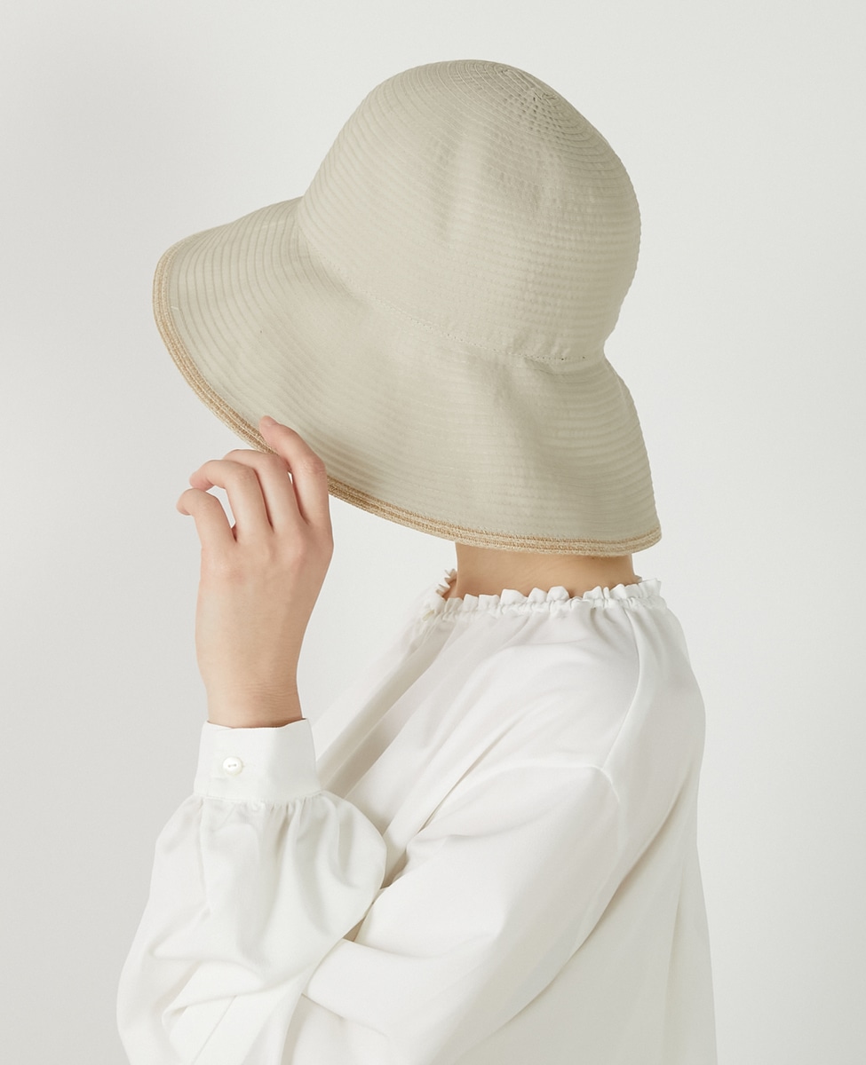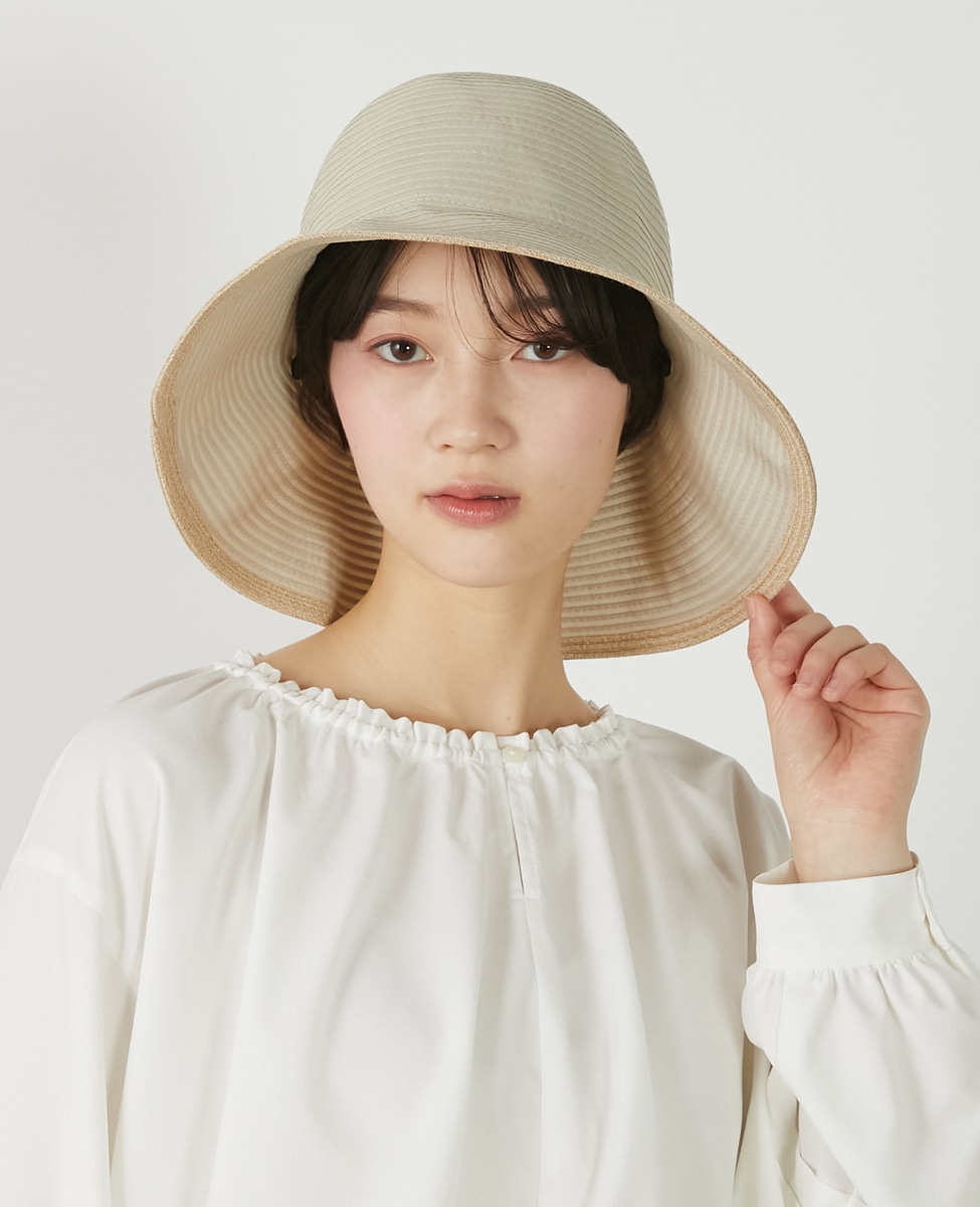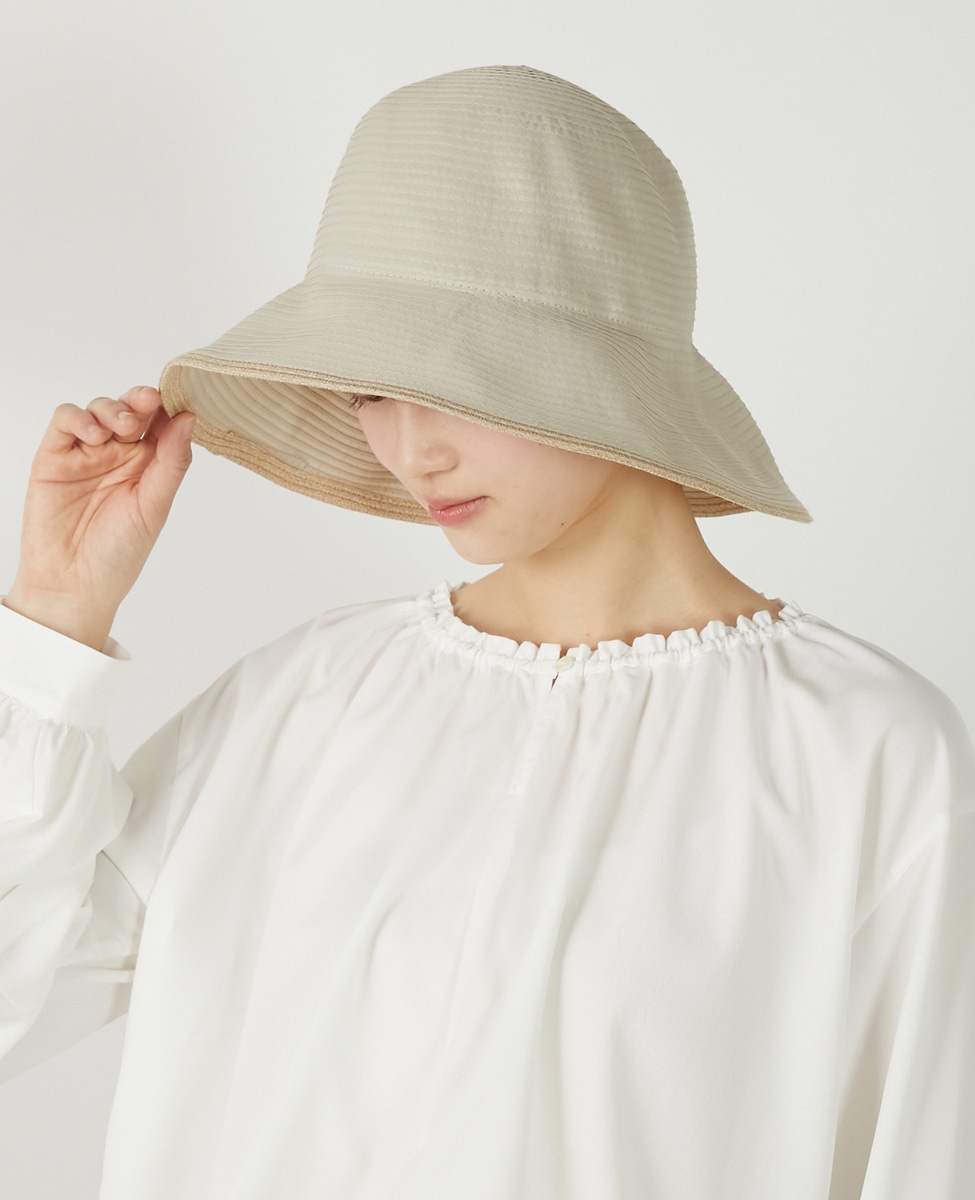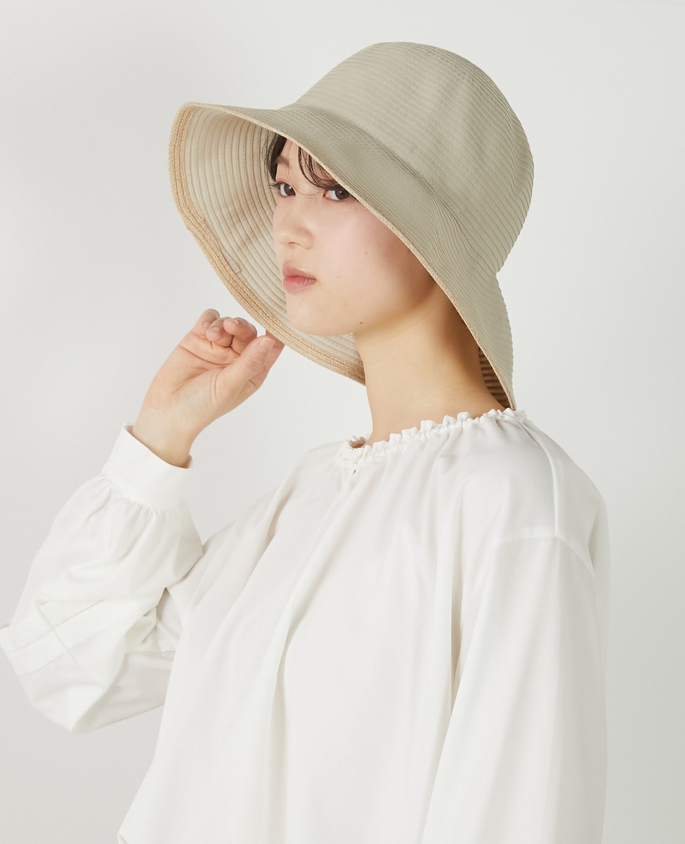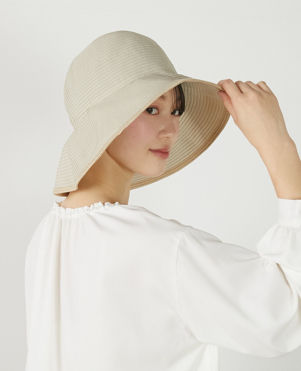 手洗い可能、ポケッタブル、UV遮蔽率90%以上、汗帯に吸水速乾抗菌防臭素材使用、サイズ調整機能付き。