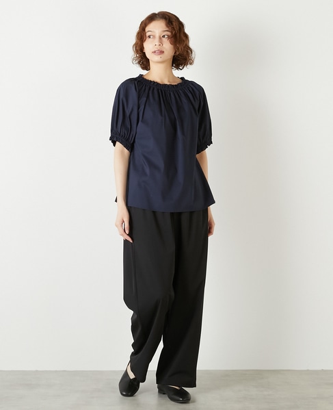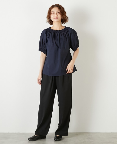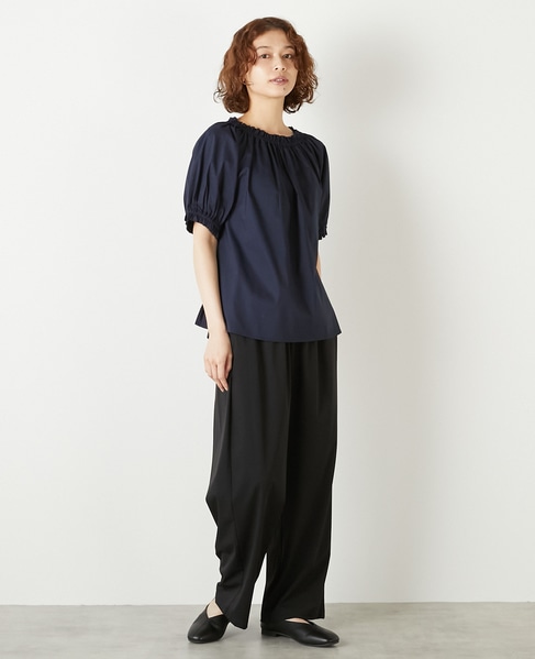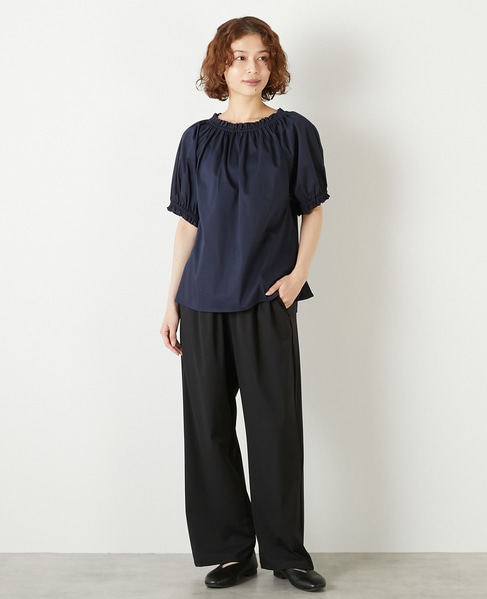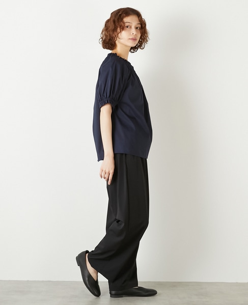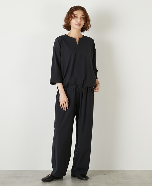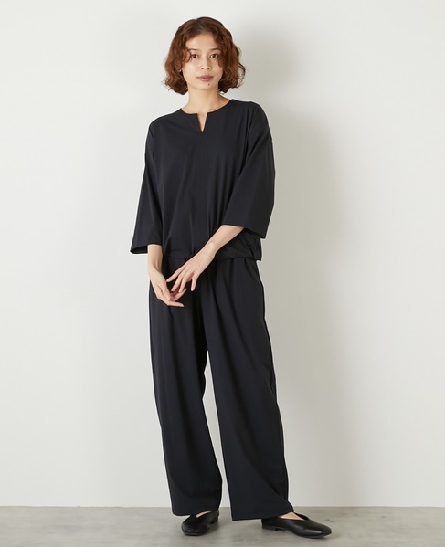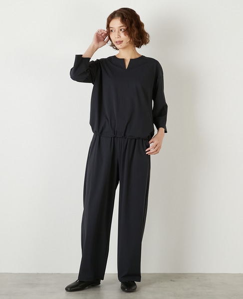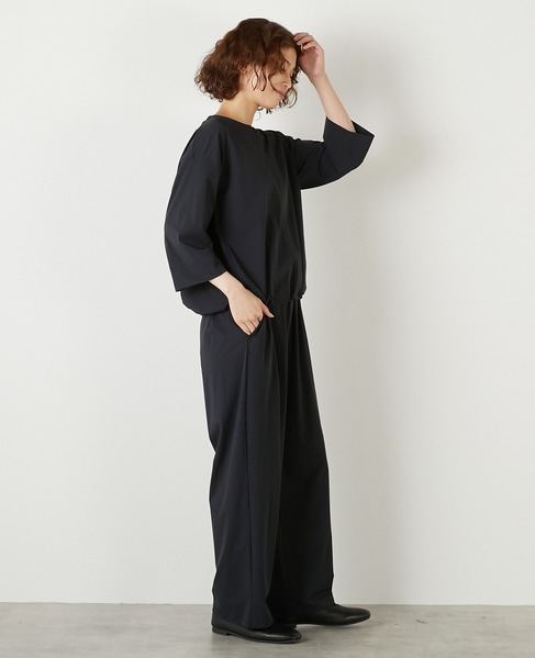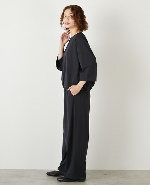 【Allease/オールイーズ】ナイロンストレッチイージーワイドカットパンツ