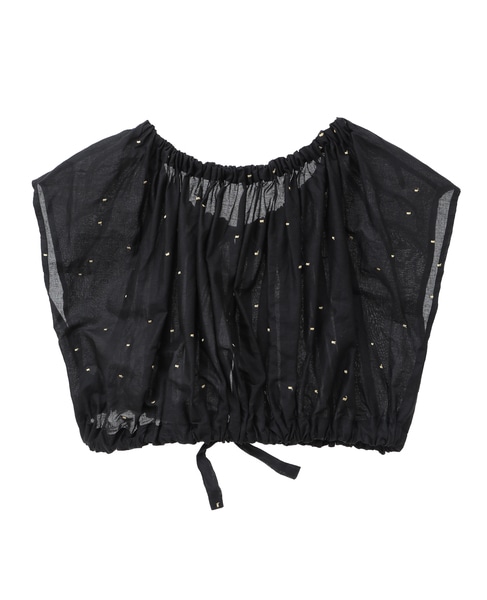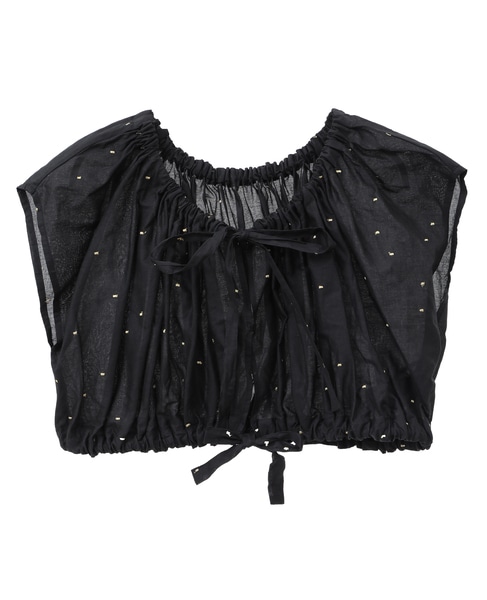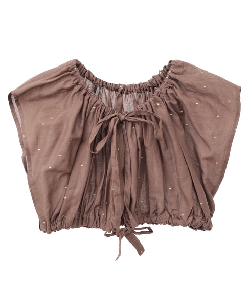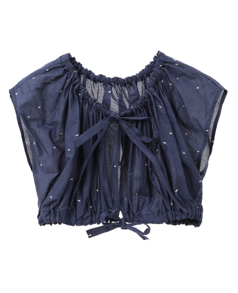 インド綿ドット刺繍ギャザーボレロブラウス