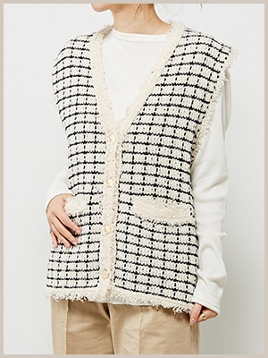 【martinique】 グリッドツィードニットジレ ¥26,400