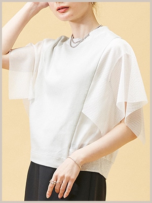 【Soffitto】 フレアーメッシュ袖トップス ¥13,200