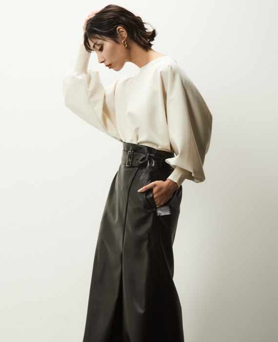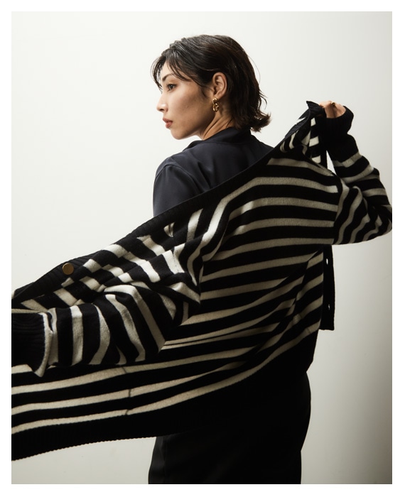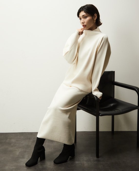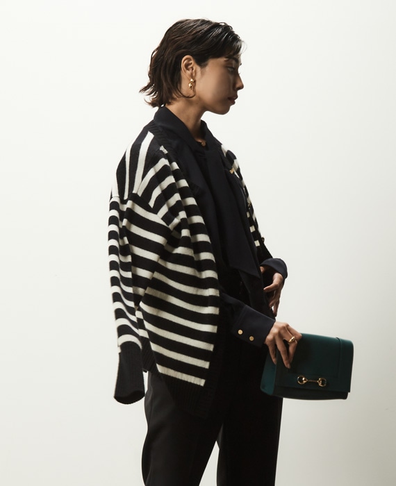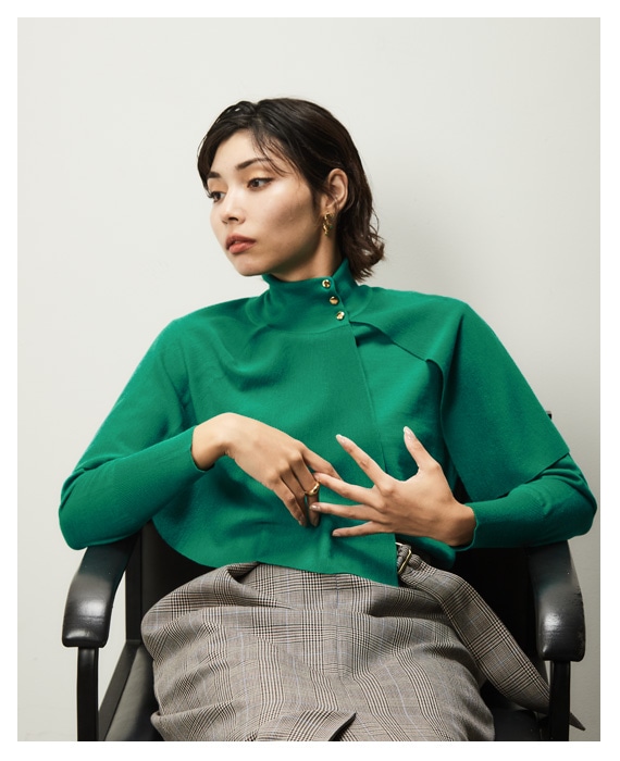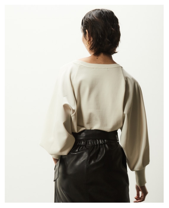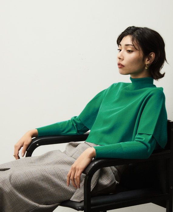 2重織の膨らみ感のある布帛とニットのコンビ。