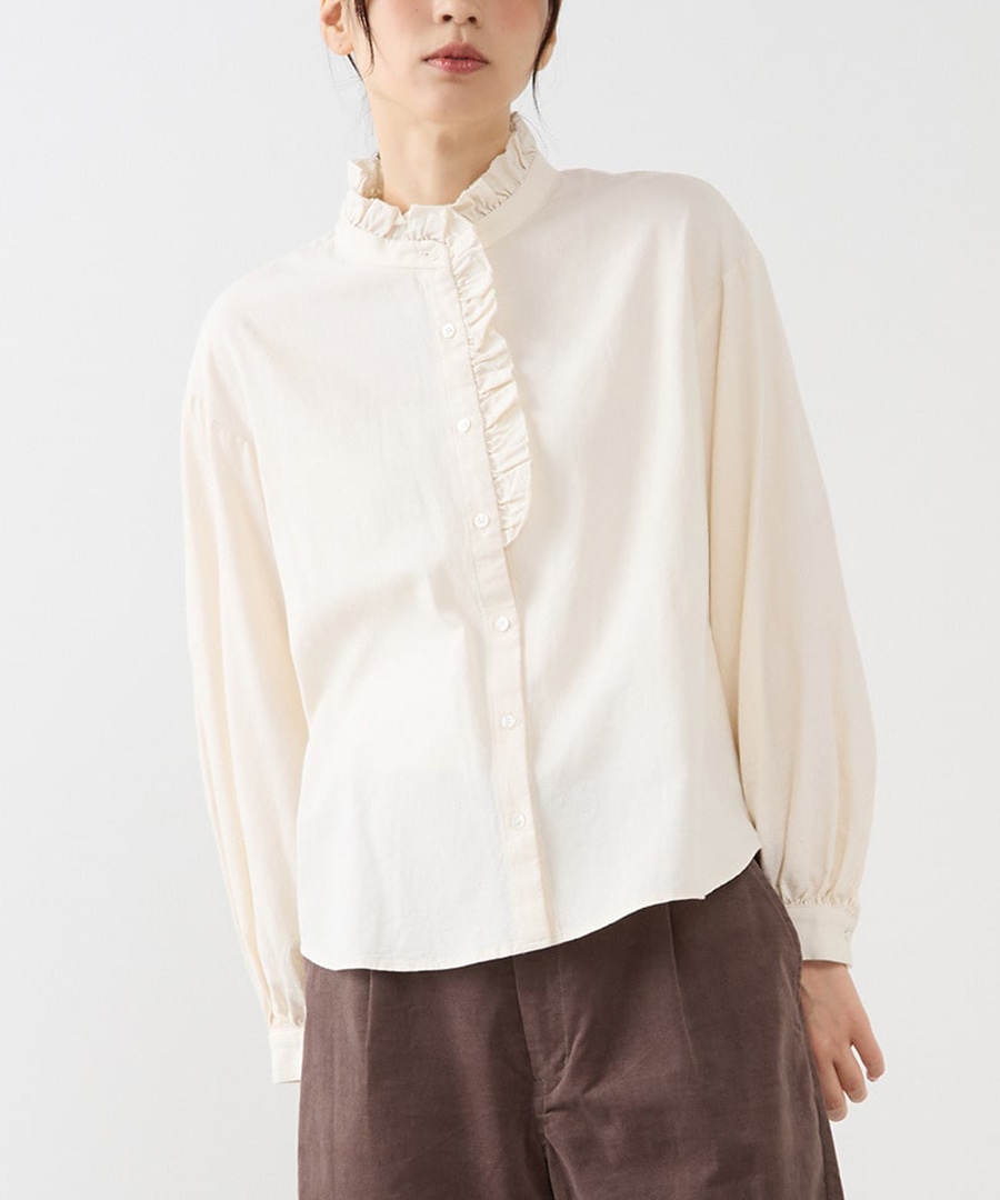 ストライプやフリル、ボウタイなど、ベーシックを軸に、ほどよくデザインを効かせたシャツ・ブラウス。一枚で着映えしつつ、ボトムを選ばないバランスの良さが支持されています。