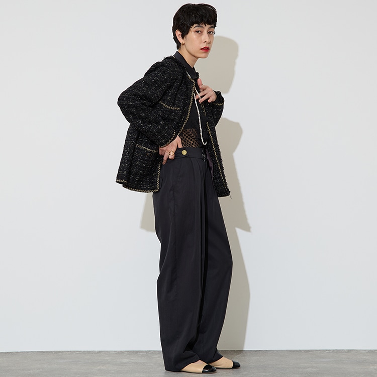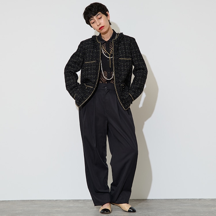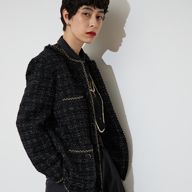 糸からこだわり織っている華やかさのある特別なツイード素材