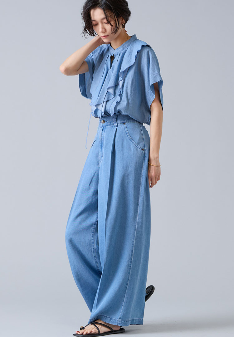 軽やかに、心地よく。初夏に寄り添うLiesseの人気デニムシリーズ。 上品さとリラックス感を兼ね備えたデニムで、大人のカジュアルスタイルをご提案します。