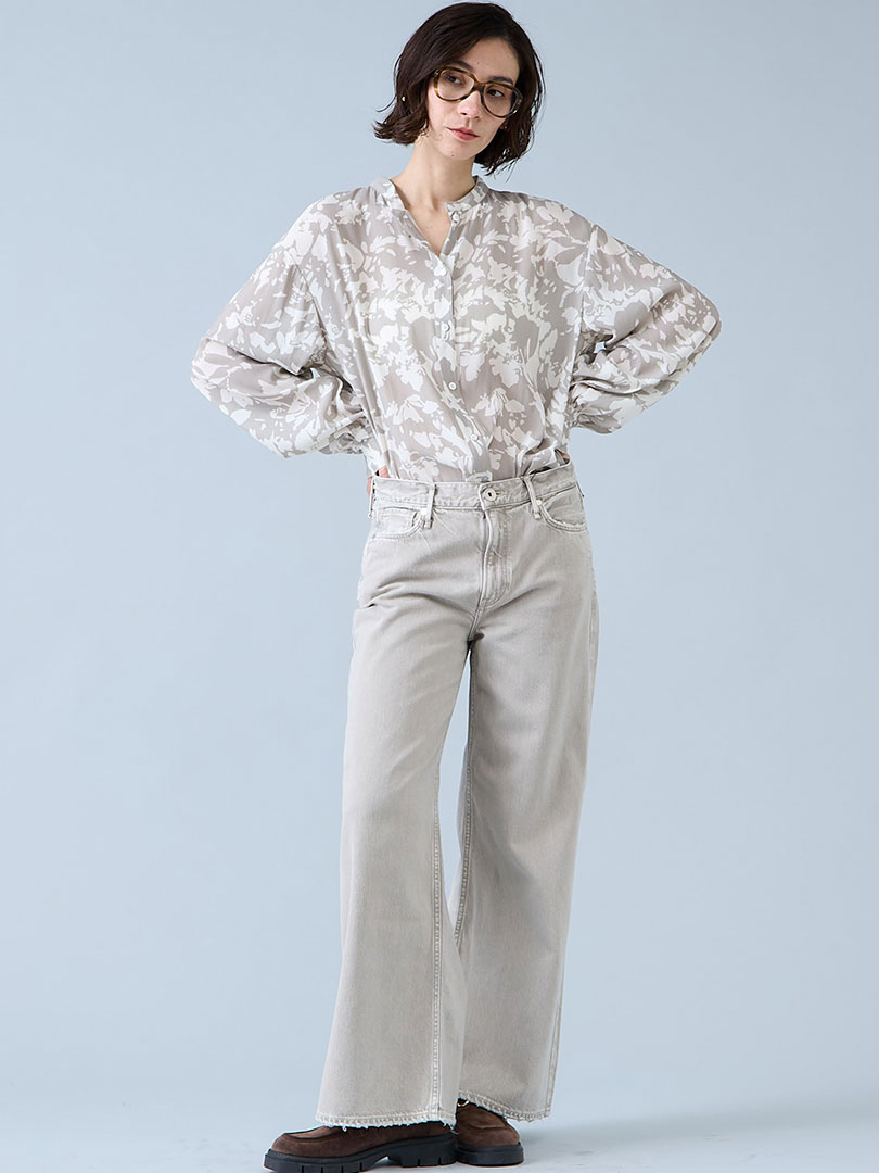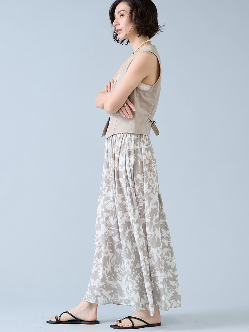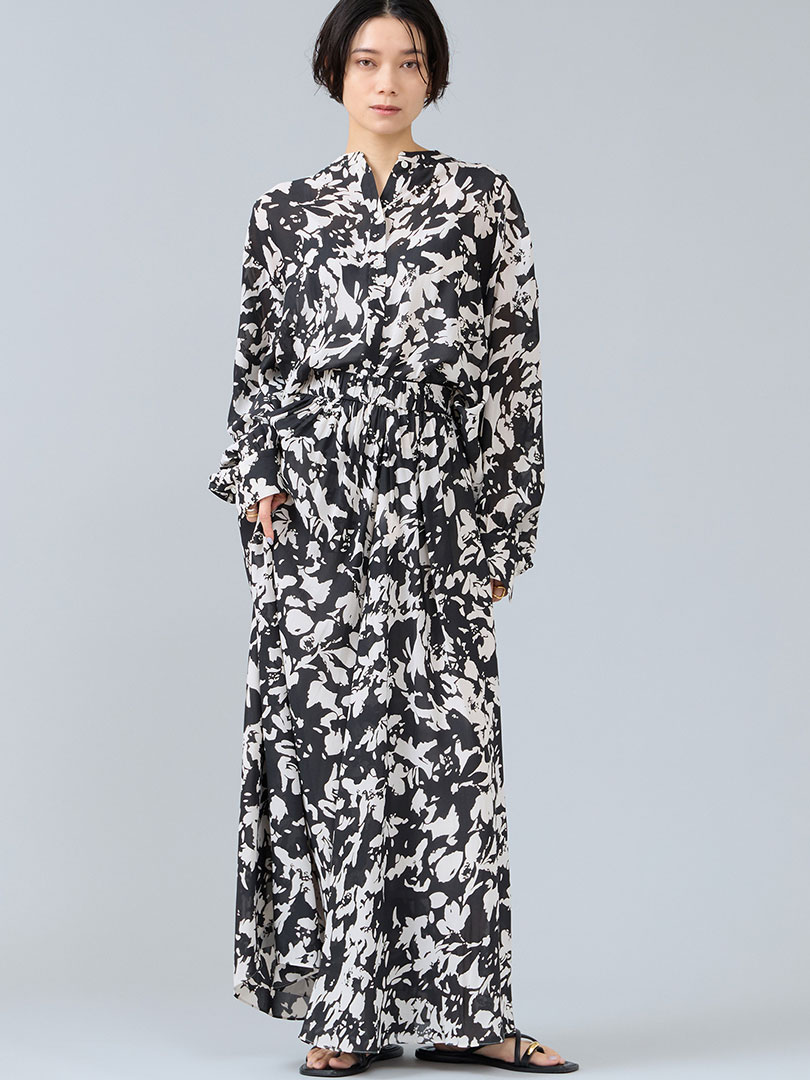 今季もトレンドのフラワーも、2配色のモノトーンが大人にピッタリのデザイン。 軽やかで落ち感のある素材は凛とした清涼感を醸します。 単品使いでも華やかに見えるボリューム感と、気軽に着やすい2配色柄はどんなアイテムにもマッチ。