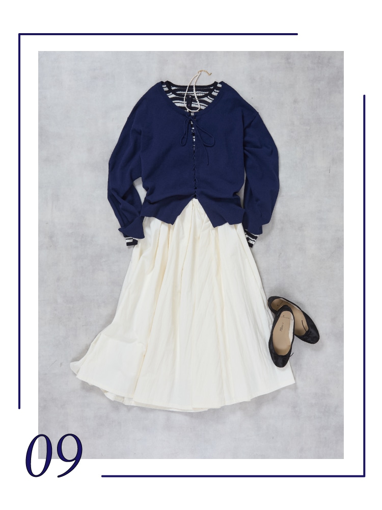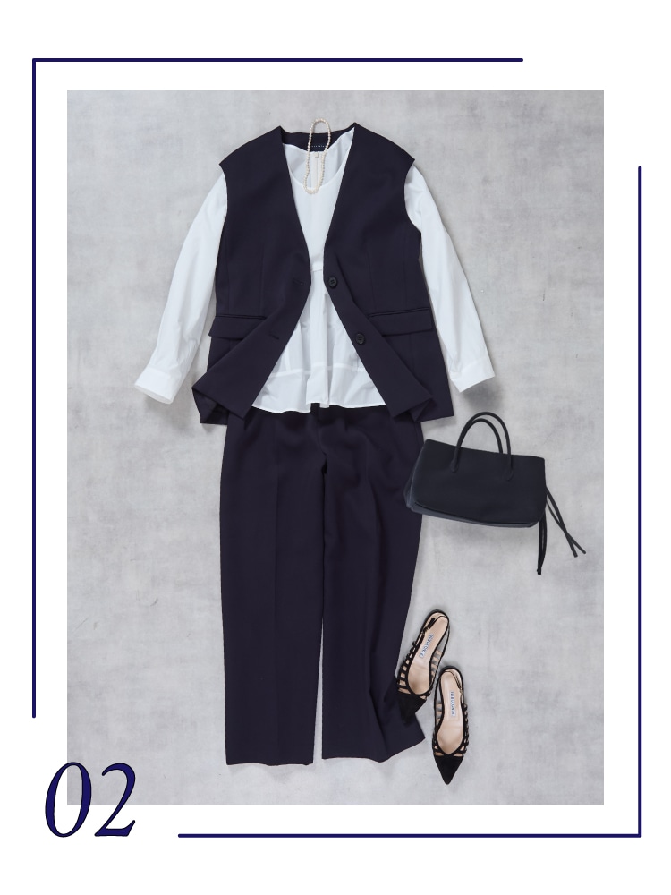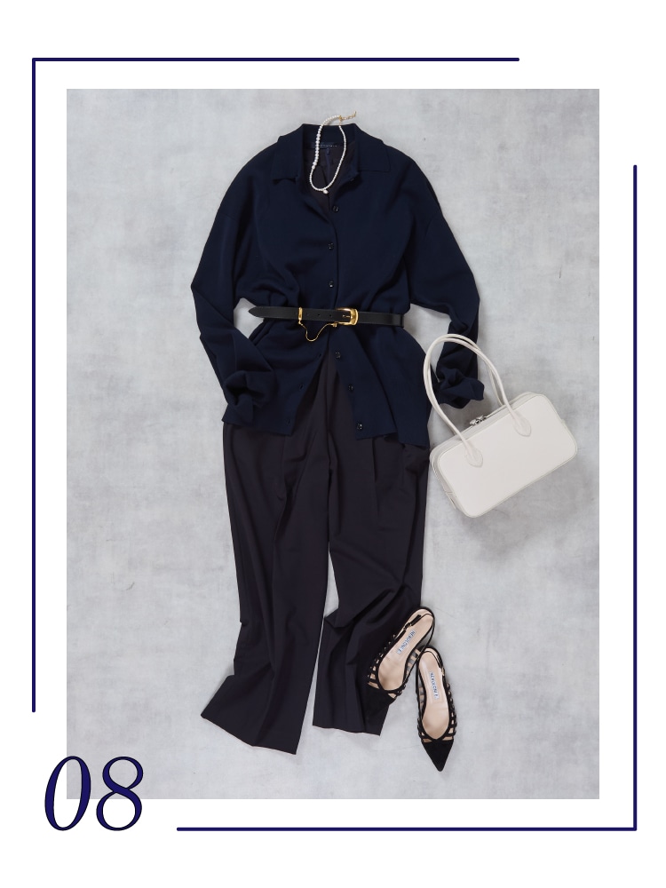 少し背筋を伸ばしたい日にも着たくなるネイビースタイルをご提案します。