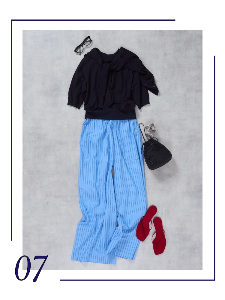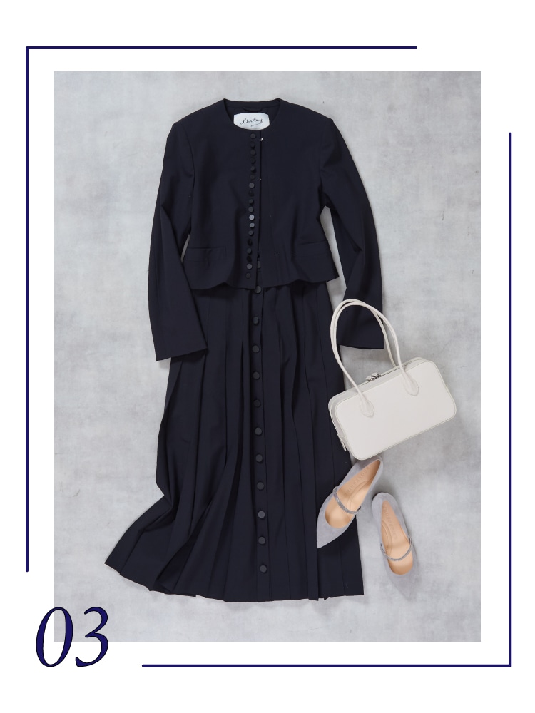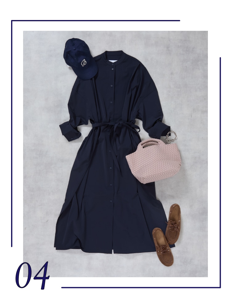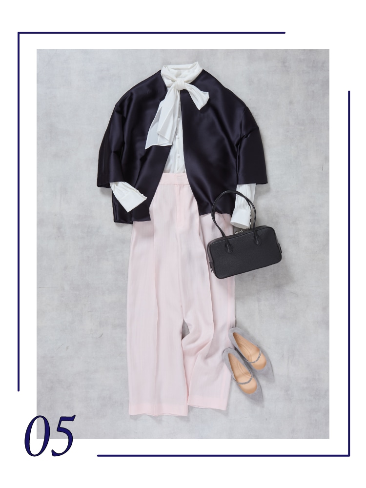 ドレスダウンしつつも洗練された印象に。