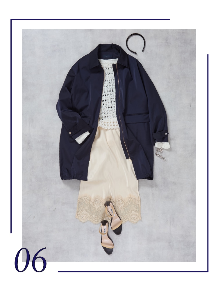 カラーやレースにも寄り添うネイビーをチョイス。