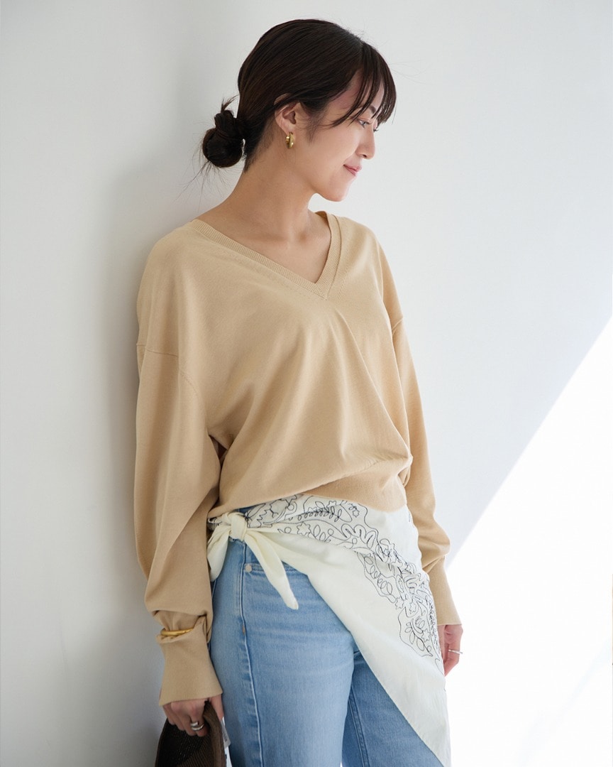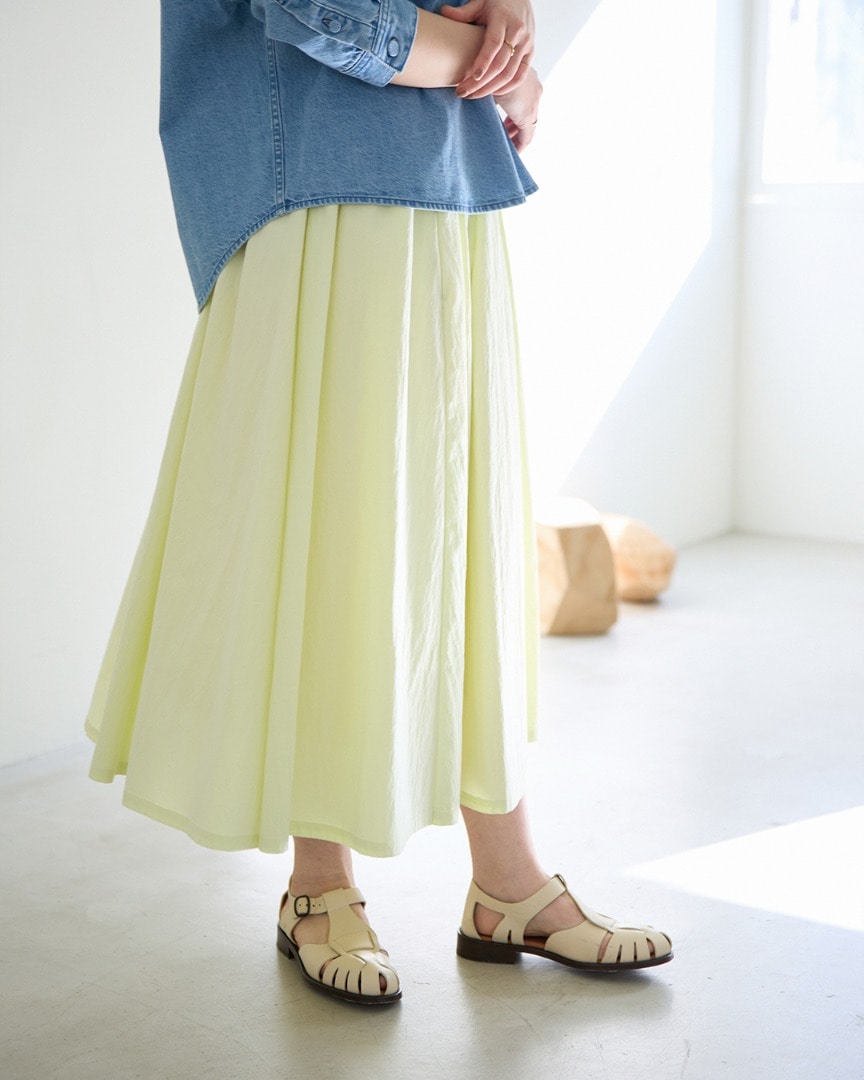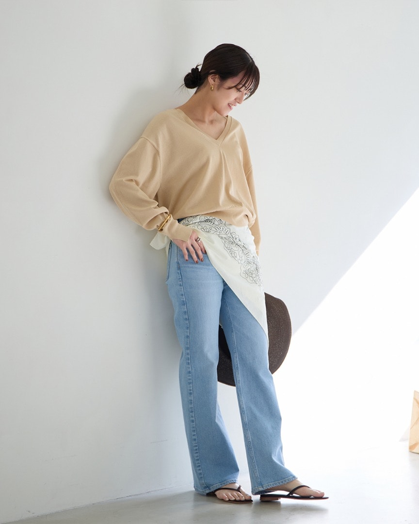 デニム×キーカラーのイエローが春らしいカラーリング。