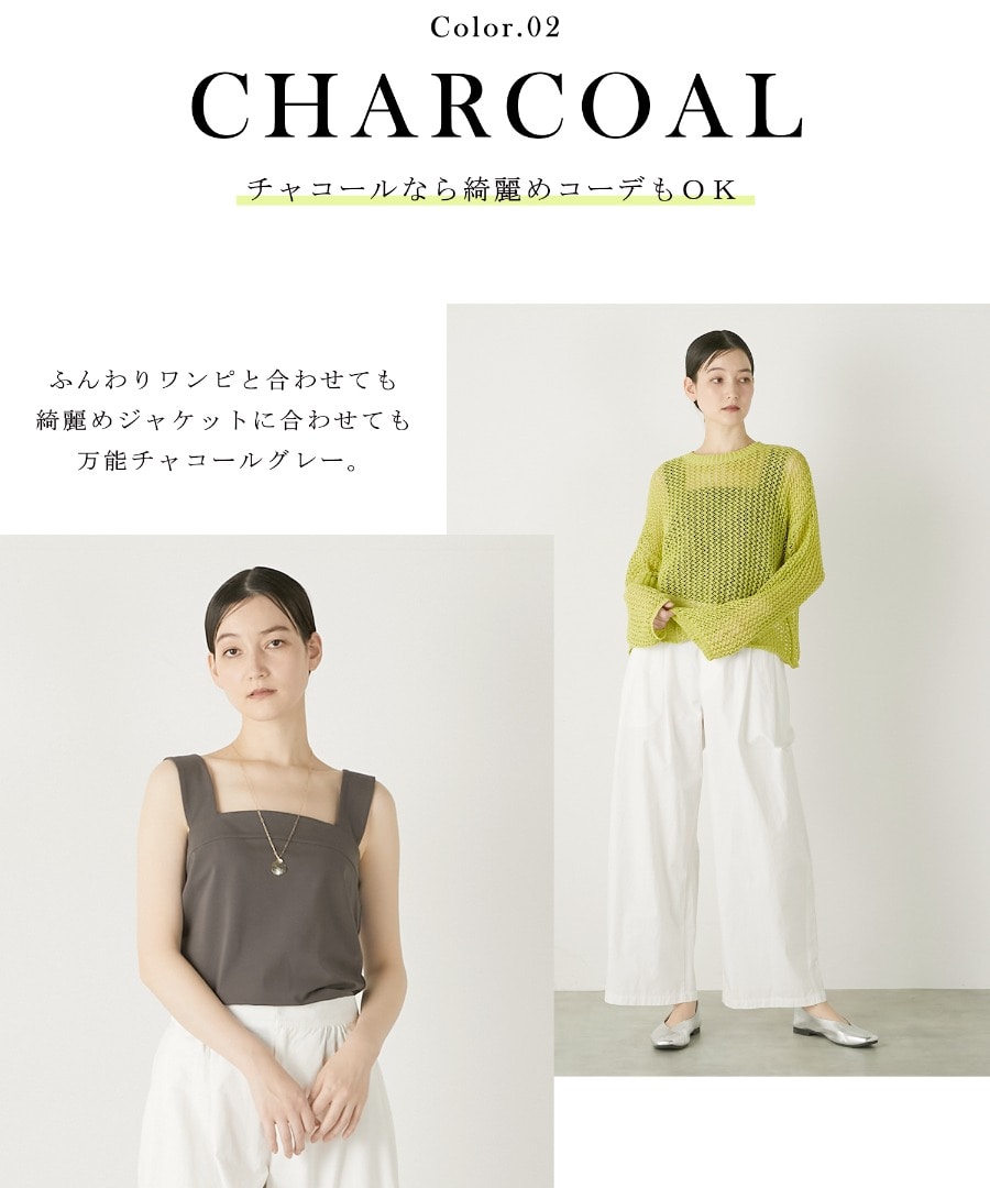 透け感あるトップスのインナーやジャケットのインナーとしてはもちろん