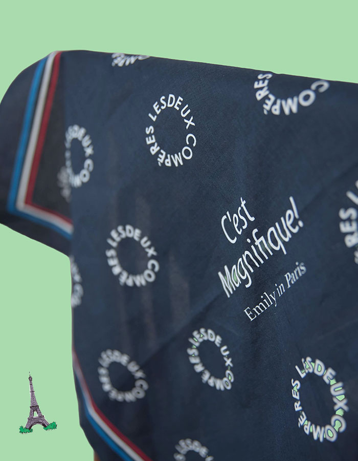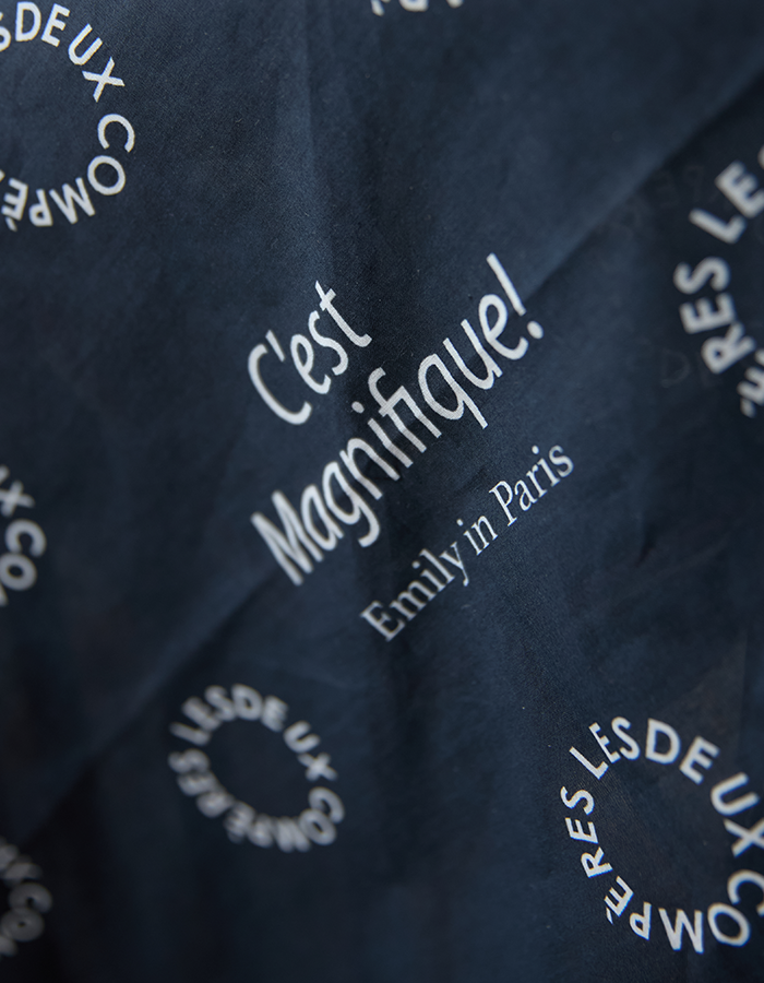 コットン100%の素材にEmily in Parisのさりげないロゴがデザインされた特別仕様。