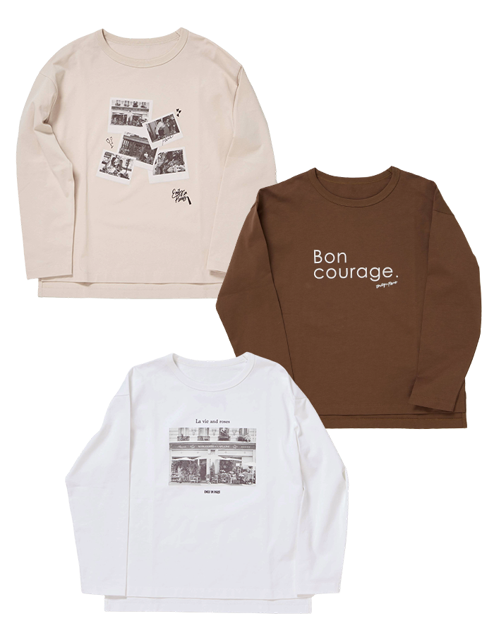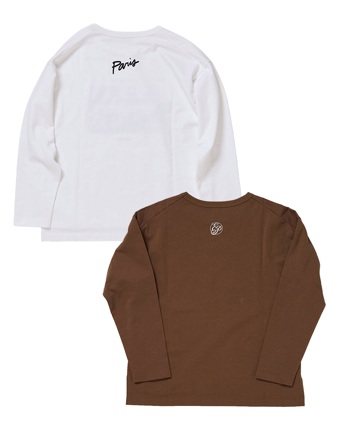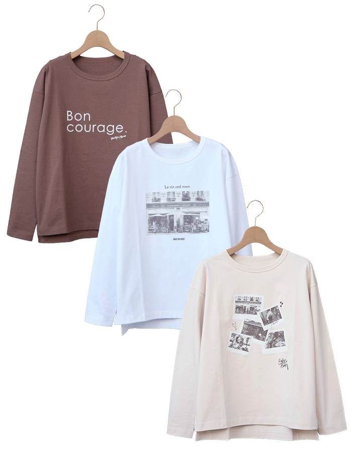 ドラマ名シーンのフォトプリントデザインとシンプルで大人なロゴプリントのロングスリーブTシャツ。