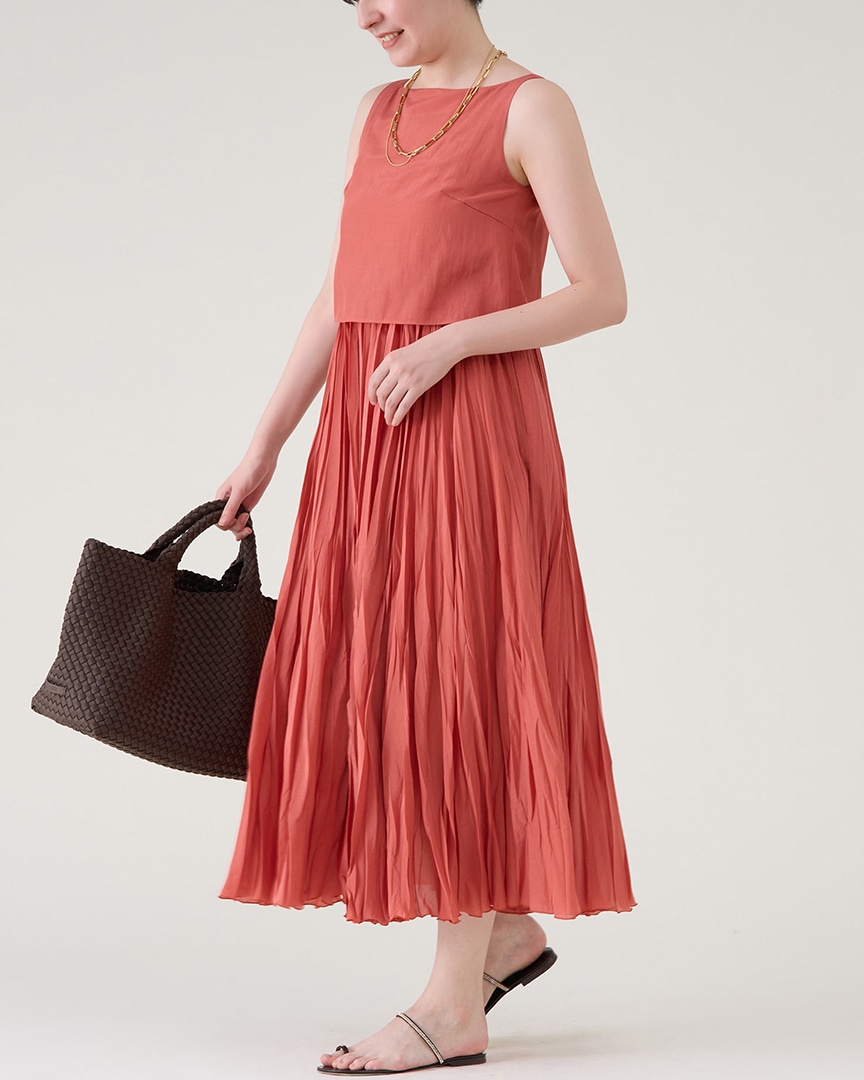 リラックス感のあるノースリーブやドラマティックなギャザー使い、チェック柄で魅せるレイヤード風など、多彩なデザインのワンピース。1枚で着映えし、暑い季節も快適に過ごせ、大人の夏スタイルに華やぎを添えてくれます。