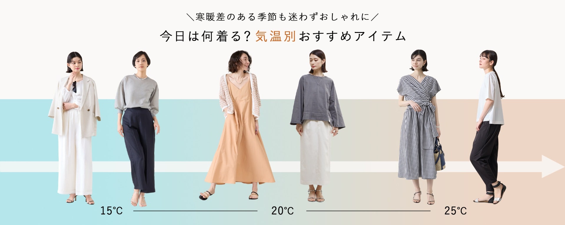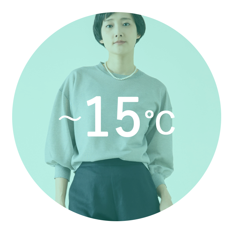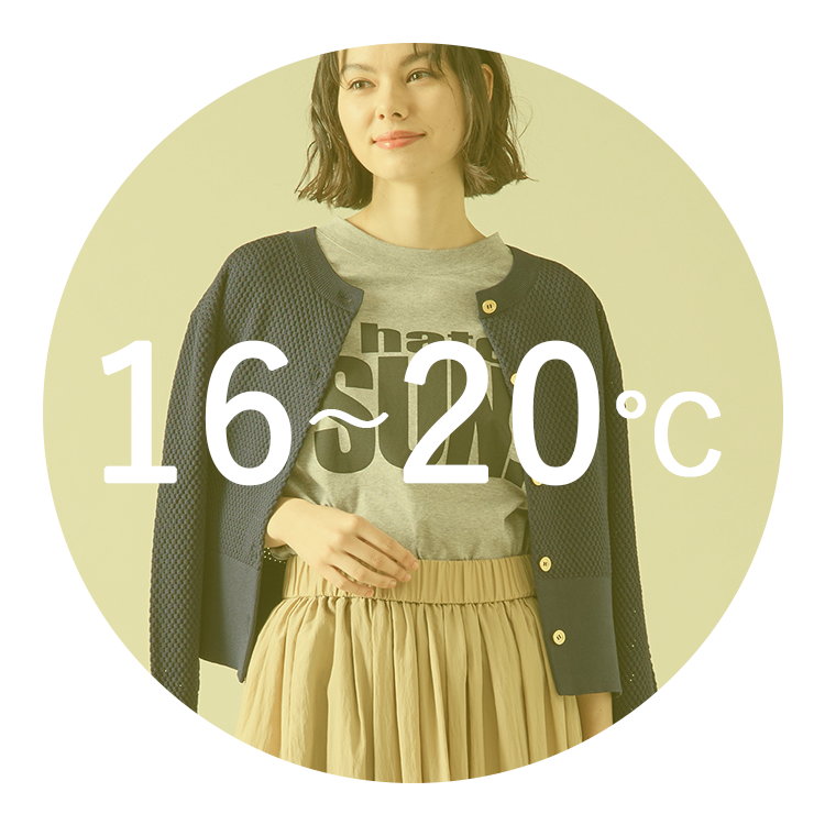 日中は過ごしやすく、でも朝晩は少し肌寒い16~20℃の春日和。軽やかなカーディガンや、一枚でさっと着られるスウェットなど、重ね着しやすく着回し力の高いアイテムが活躍します。気温差にうまく対応しながら、快適さと今っぽさのどちらも叶えて。