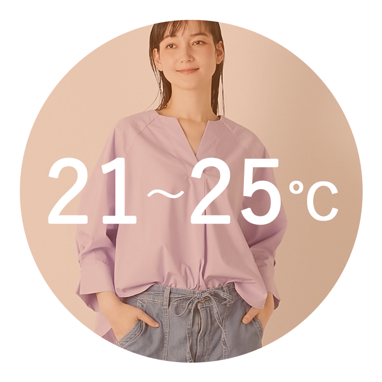春本番の陽気が心地よい21~25℃の日は、軽やかに1枚で着こなせるアイテムが活躍。シャツやブラウス、カットソーにワンピースと、コーデの幅もぐっと広がります。抜け感のある着こなしで、春のおしゃれを思いきり楽しんで。
