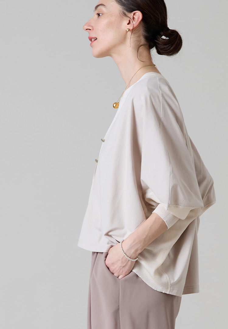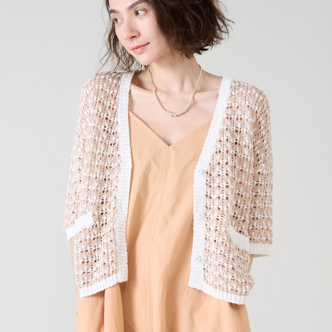 さっと羽織るだけで春らしい抜け感を演出。軽やか素材で冷房・紫外線対策にもぴったりな一枚です。