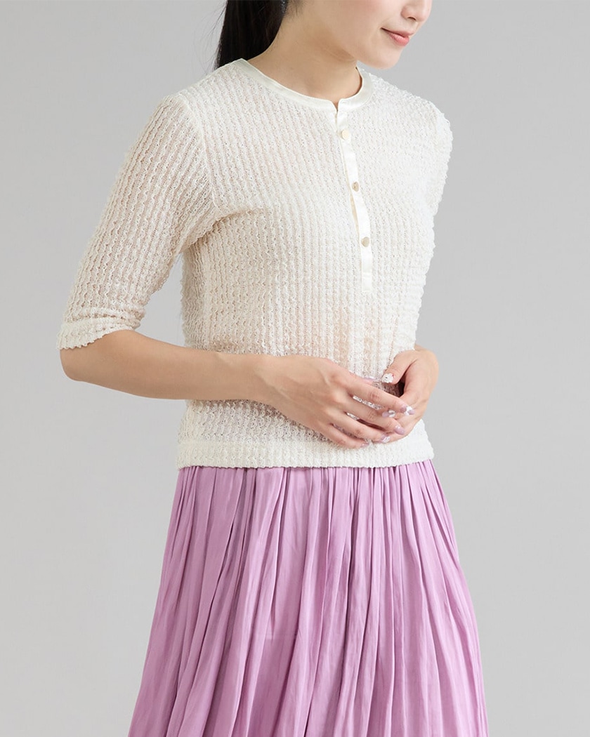 柔らかさの中に潜む、確かな存在感。 素材とフォルムで語るニットが、秋冬のスタイルを支える。 レイヤードに映える軽やかな一枚から、主役になるボリュームニットまで、多彩にラインアップ。