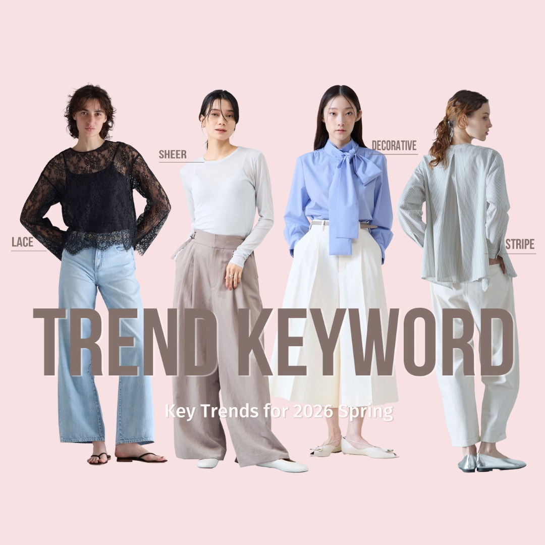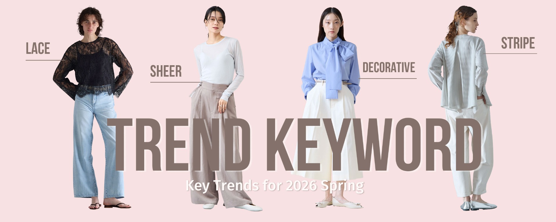この春のスタイリングをぐっと新鮮にしてくれる、 注目のトレンドキーワードをピックアップ。 春らしい軽やかなデザインで 新しいスタイリングを楽しんで。
