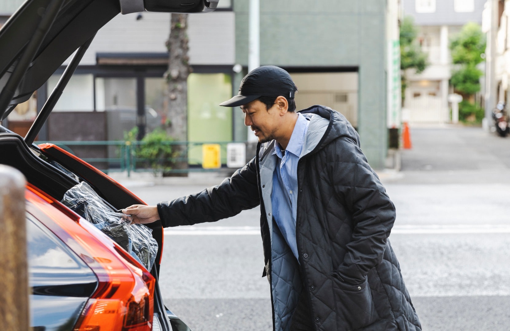 キルティングのコートにはコンサバなイメージを持っているから、あえて外すためにデニムパンツとスニーカーを選んで、少し大人っぽくするためにシャツを合わせています。スラックスで合わせるのもカッコいいけど、それじゃトラッドすぎる気がして。今の気分だったらデニムがちょうどいいと思います。