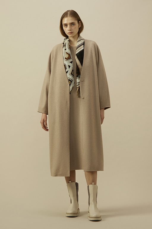 袖山に丸みを持たせた優しい印象のワンピースとコート。