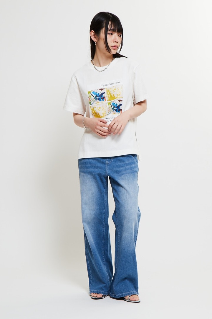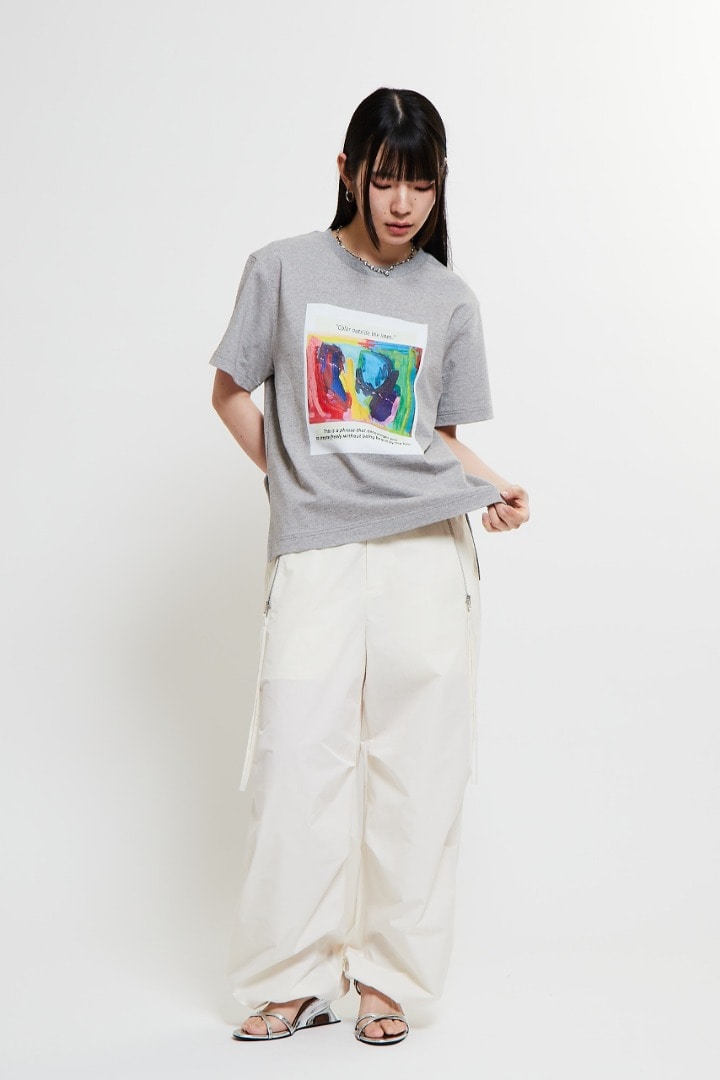 落ち着いた印象のグレーには色合いの鮮やかなアートをプリント。 バックシルエットにはブラックの刺繍入り。 A0551UTS524 : ¥10,780 BUY