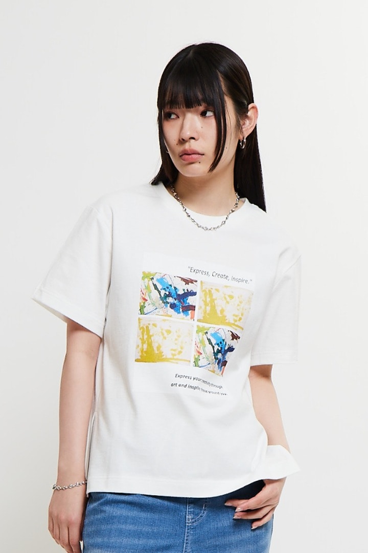 ホワイトTシャツに相性の良い、白い余白のあるアートを2種類使用。 バックシルエットにはブラックの刺繍入り。 A0551UTS524 : ¥10,780 BUY
