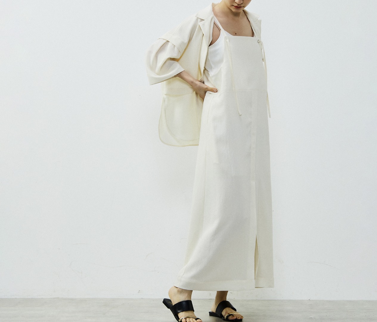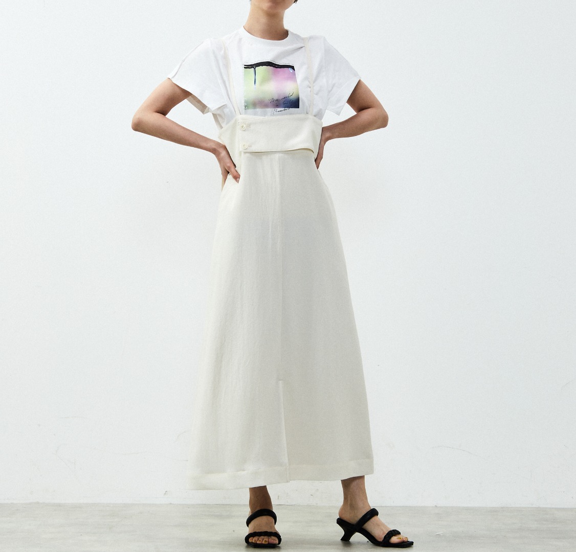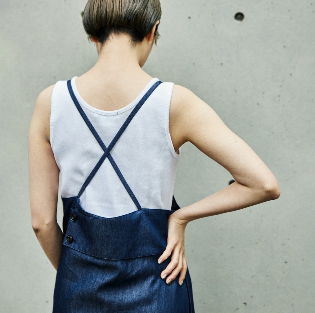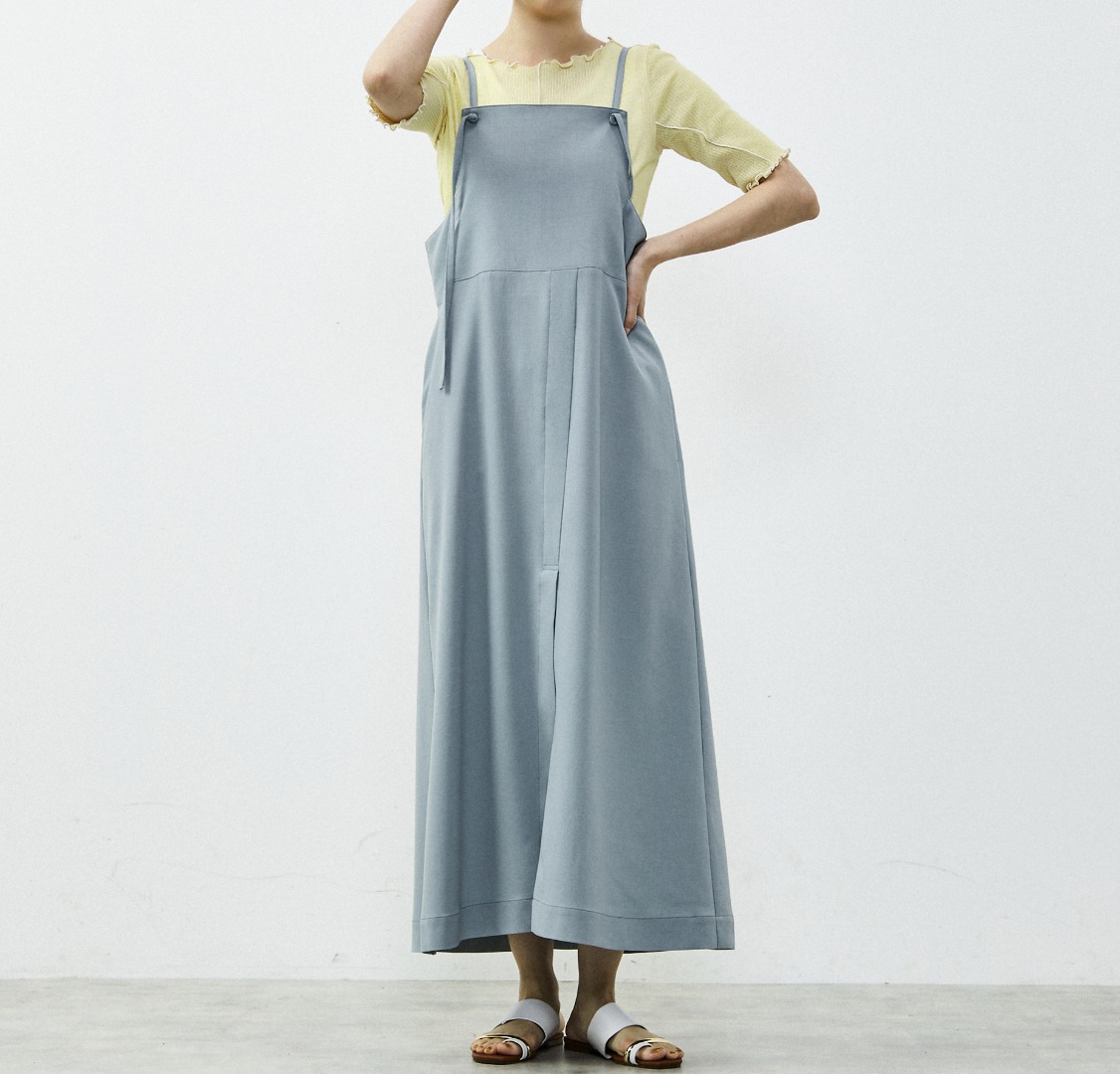 こちらもFB517とセットアップになる2WAYのキャミワンピース。すっきりしたシルエットですが、体のラインをひろわないゆったりフィットを意識。