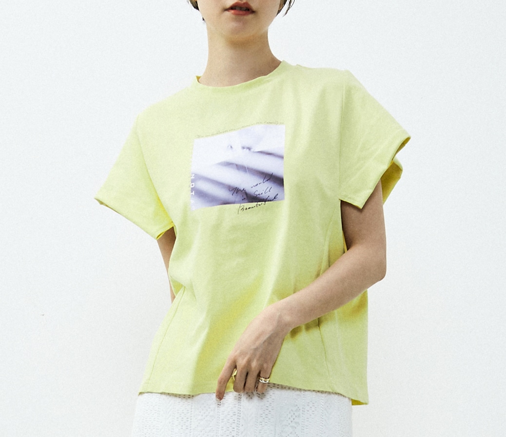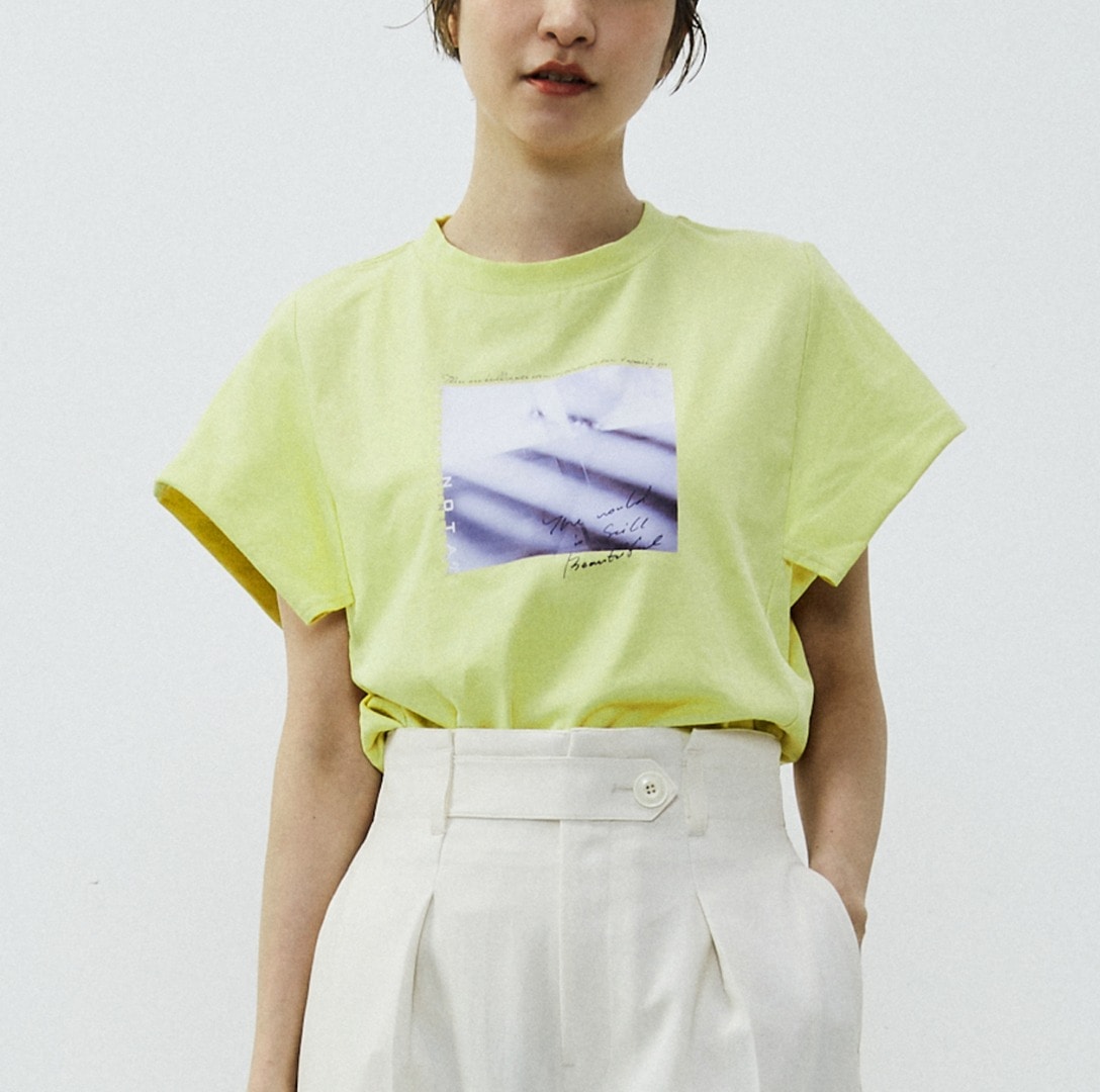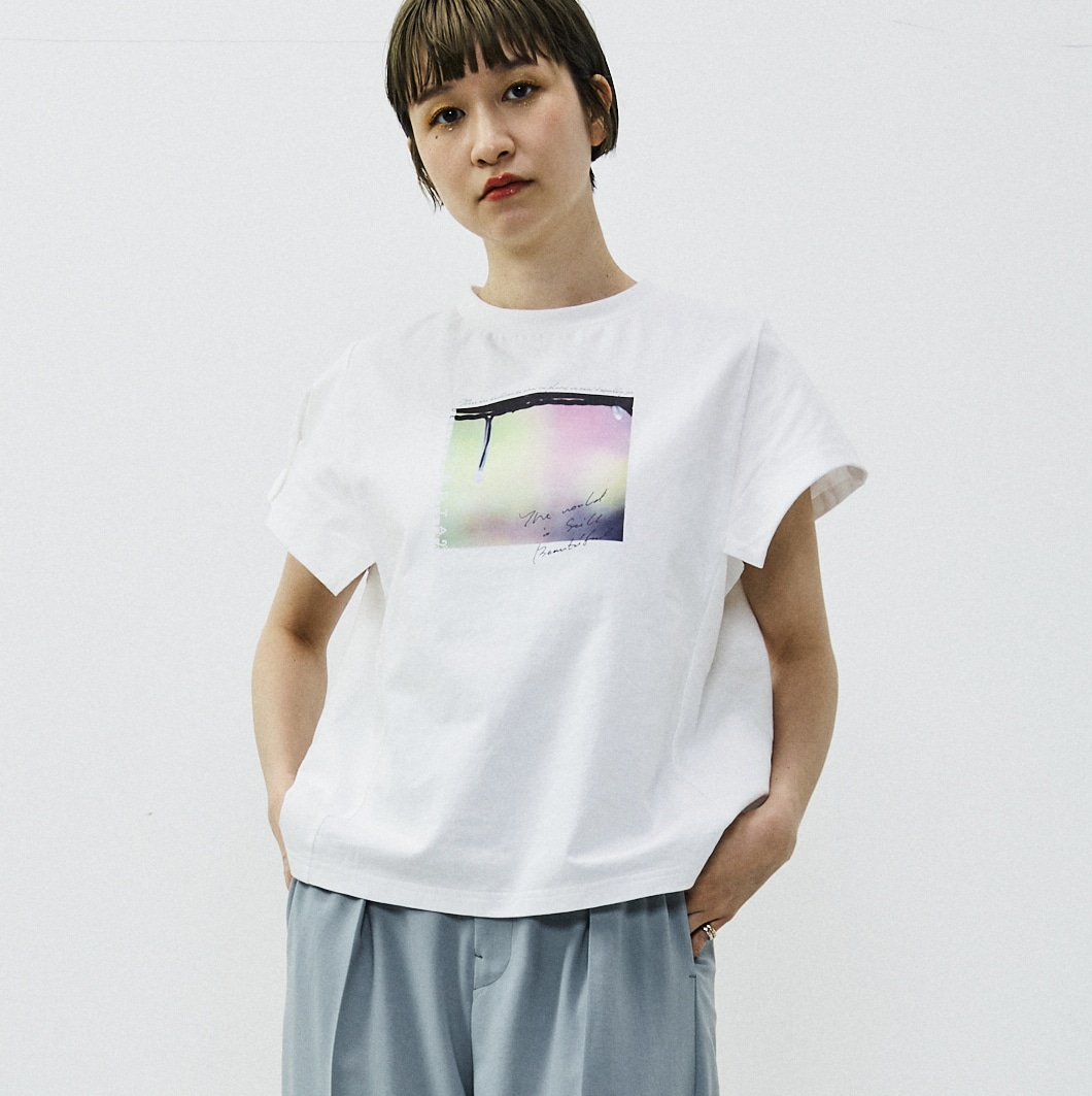 袖のデザインがポイントのプリントTシャツです。使いやすいTシャツのシルエットを活かしながら、袖の作りにちょっとしたデザインを入れているので、他とは差別化できるTシャツになっています。プリントはフォトグラファー成田大河さんのフォトを使用。”普段見えないところにも、美しいものがある”という視点で撮られた日常の写真です。
